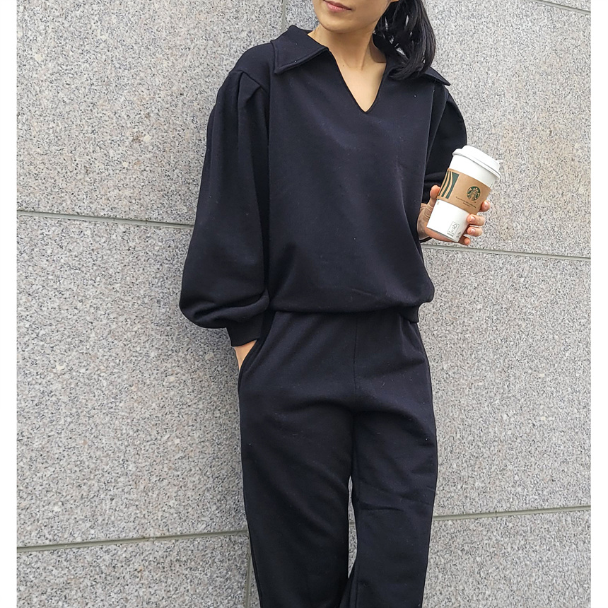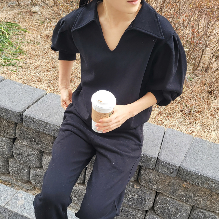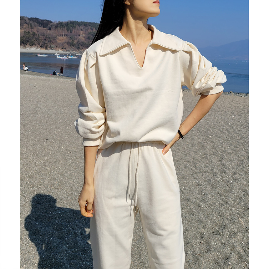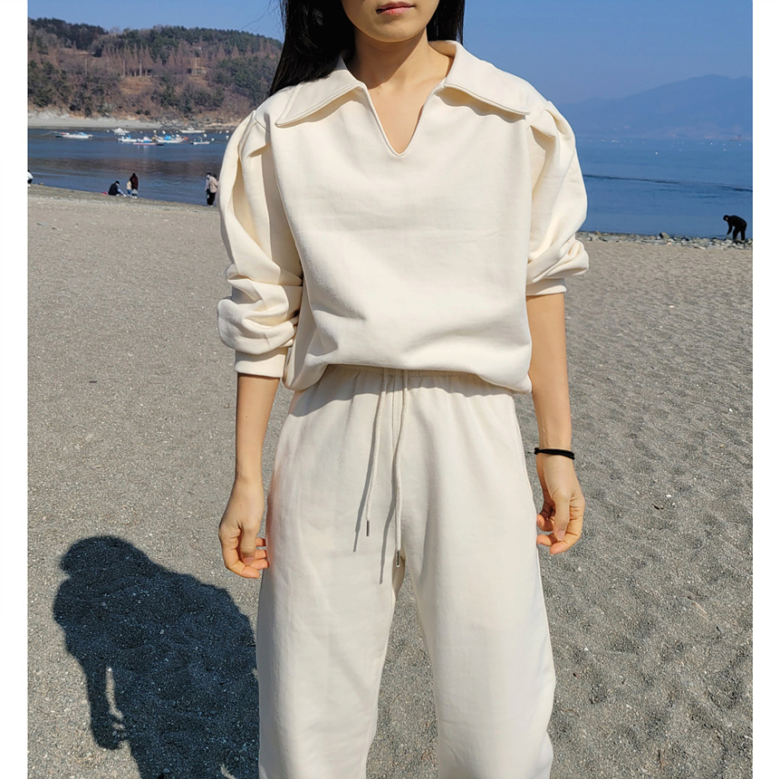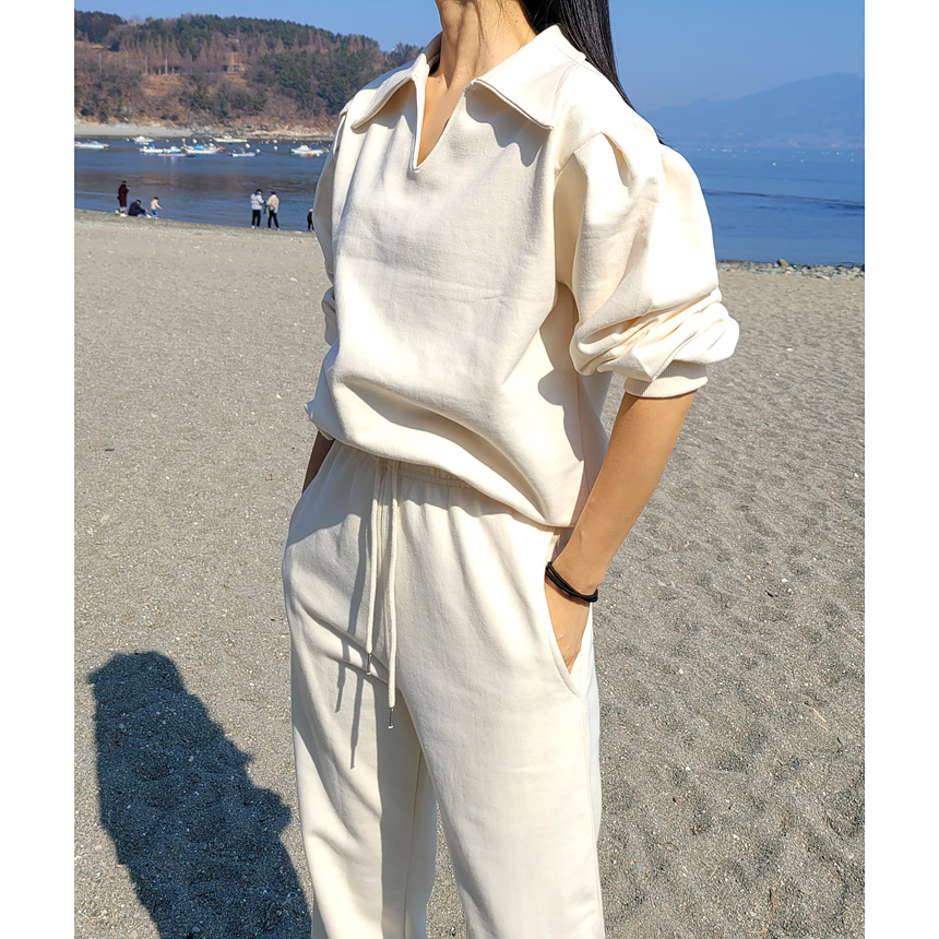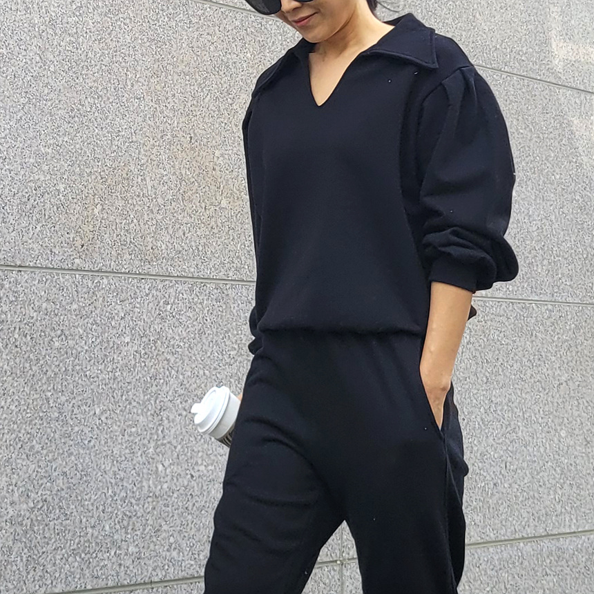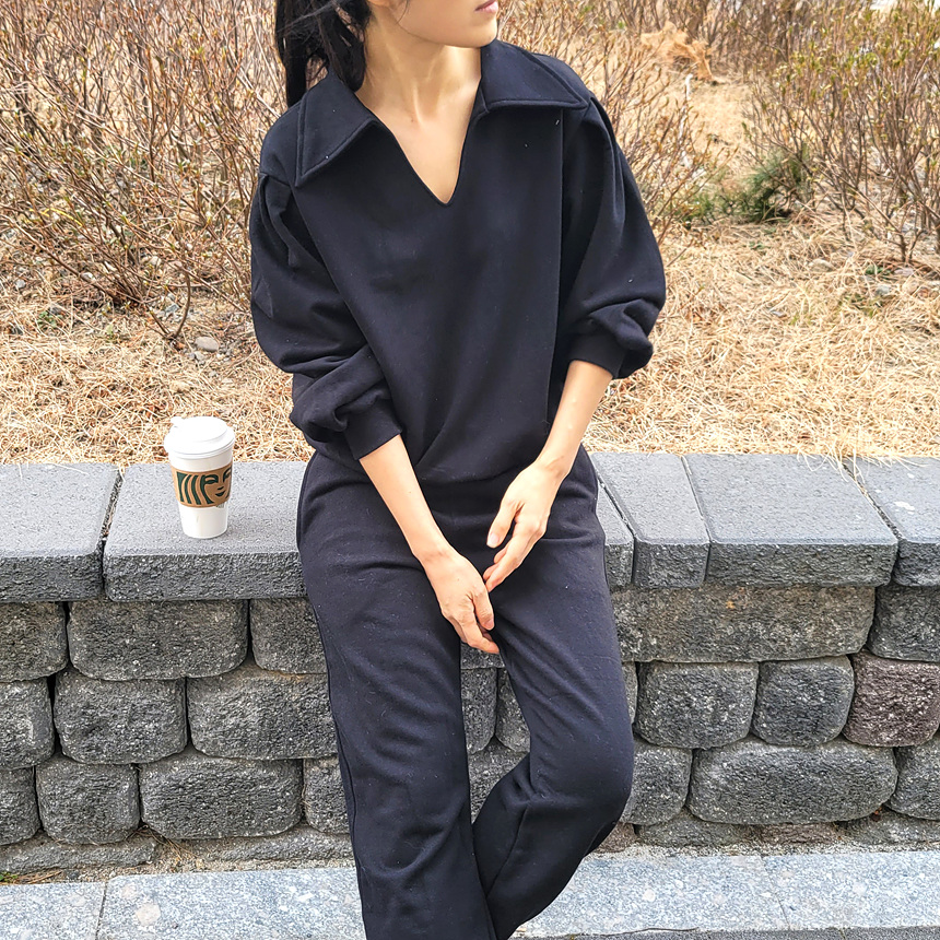 상의 맨투맨은 적당히 파인 브이넥 라인에 카라를 주어