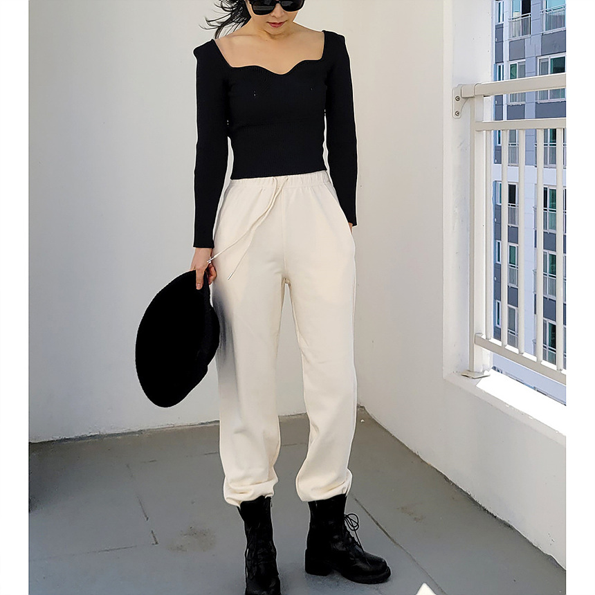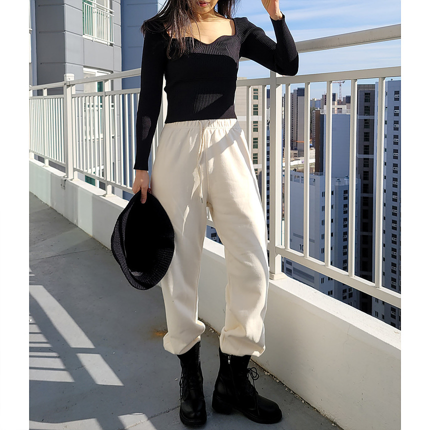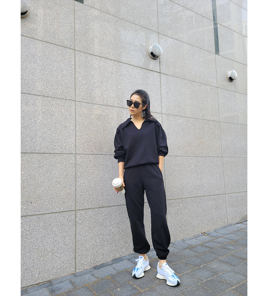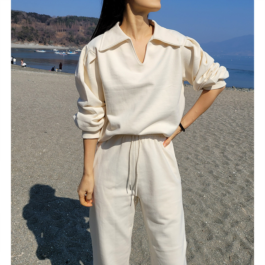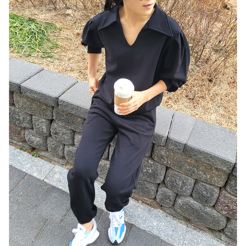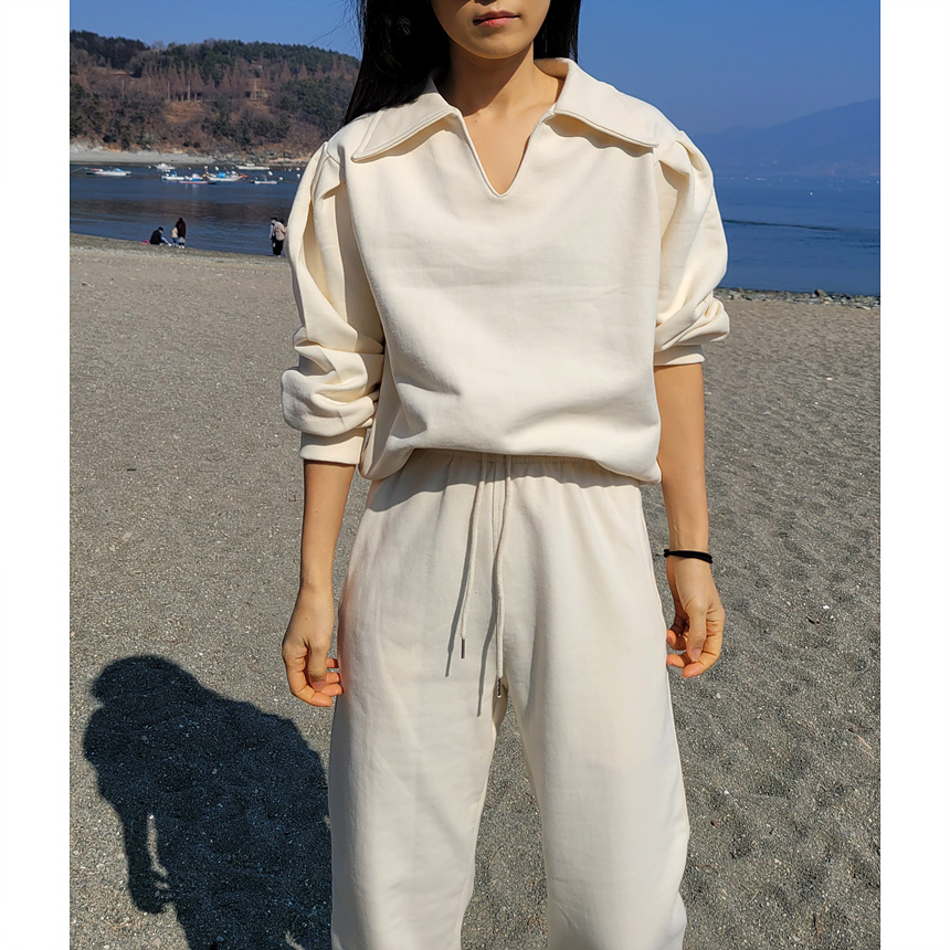 상의 맨투맨은 적당히 파인 브이넥 라인에 카라를 주어