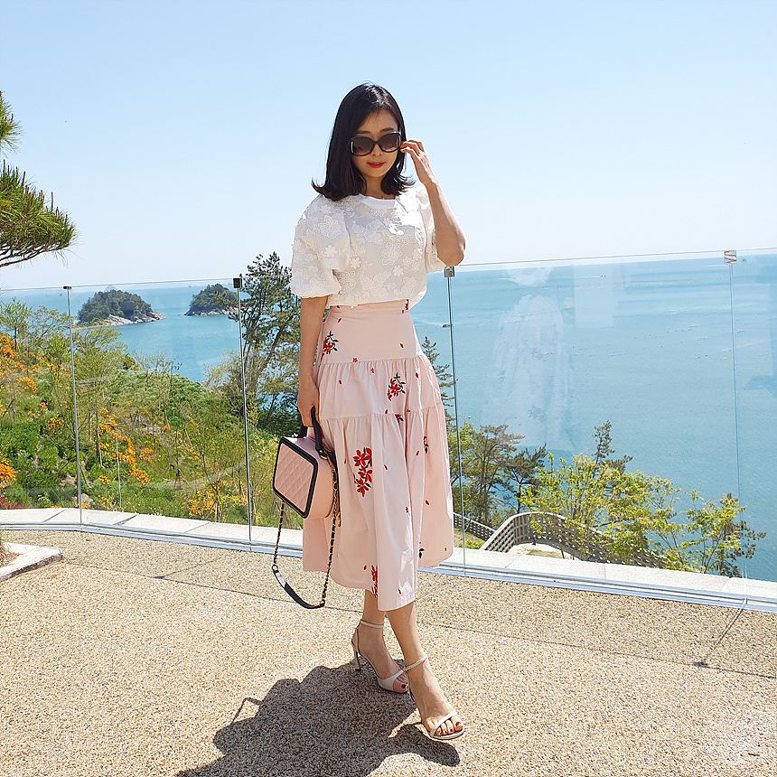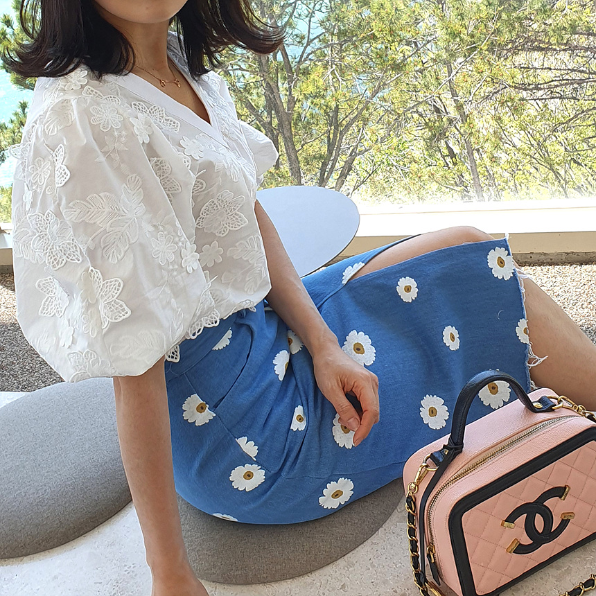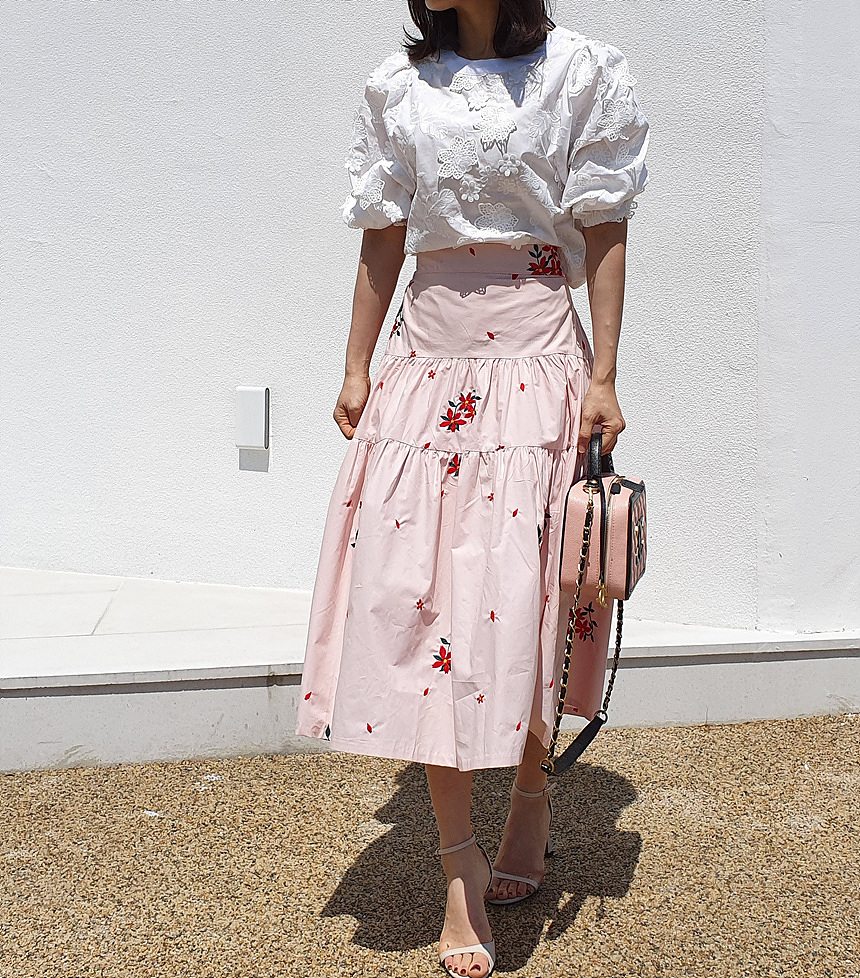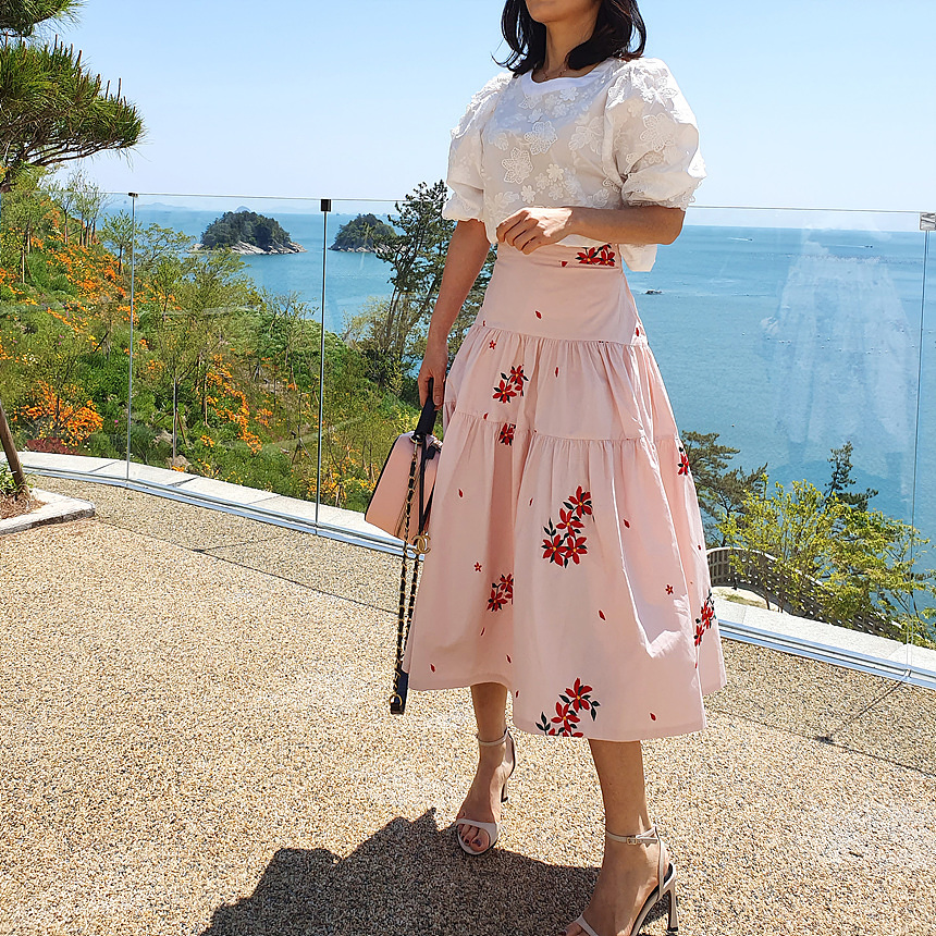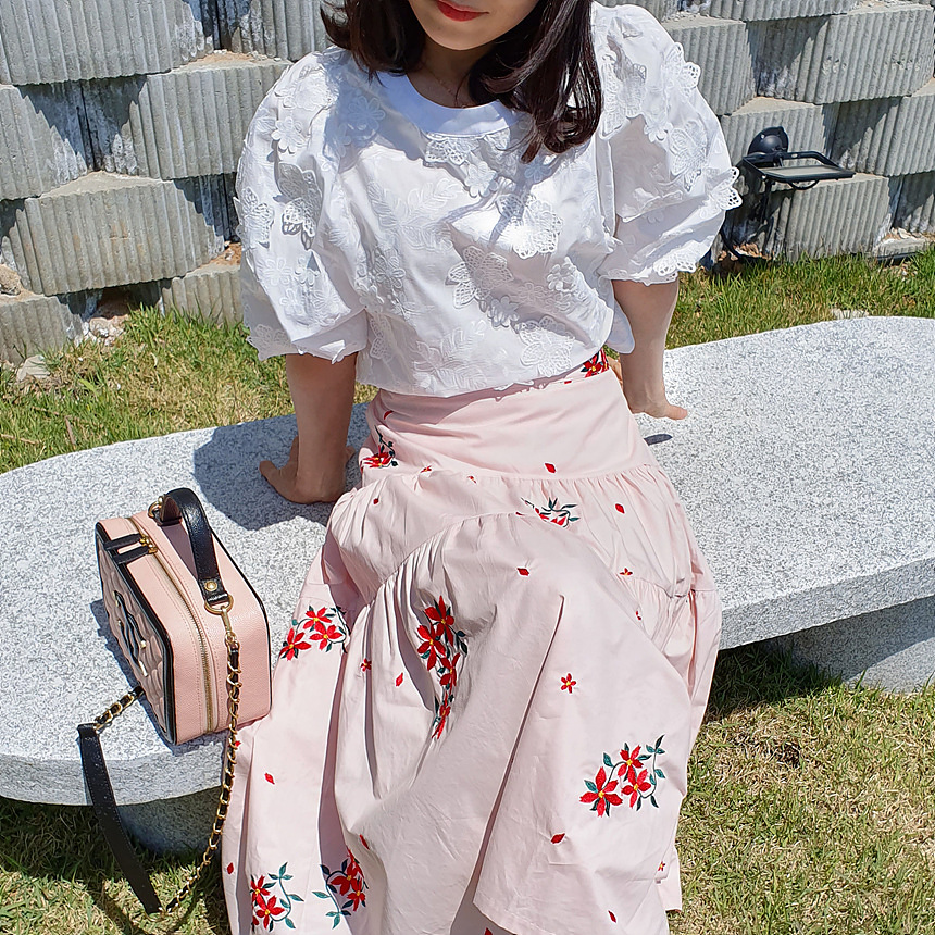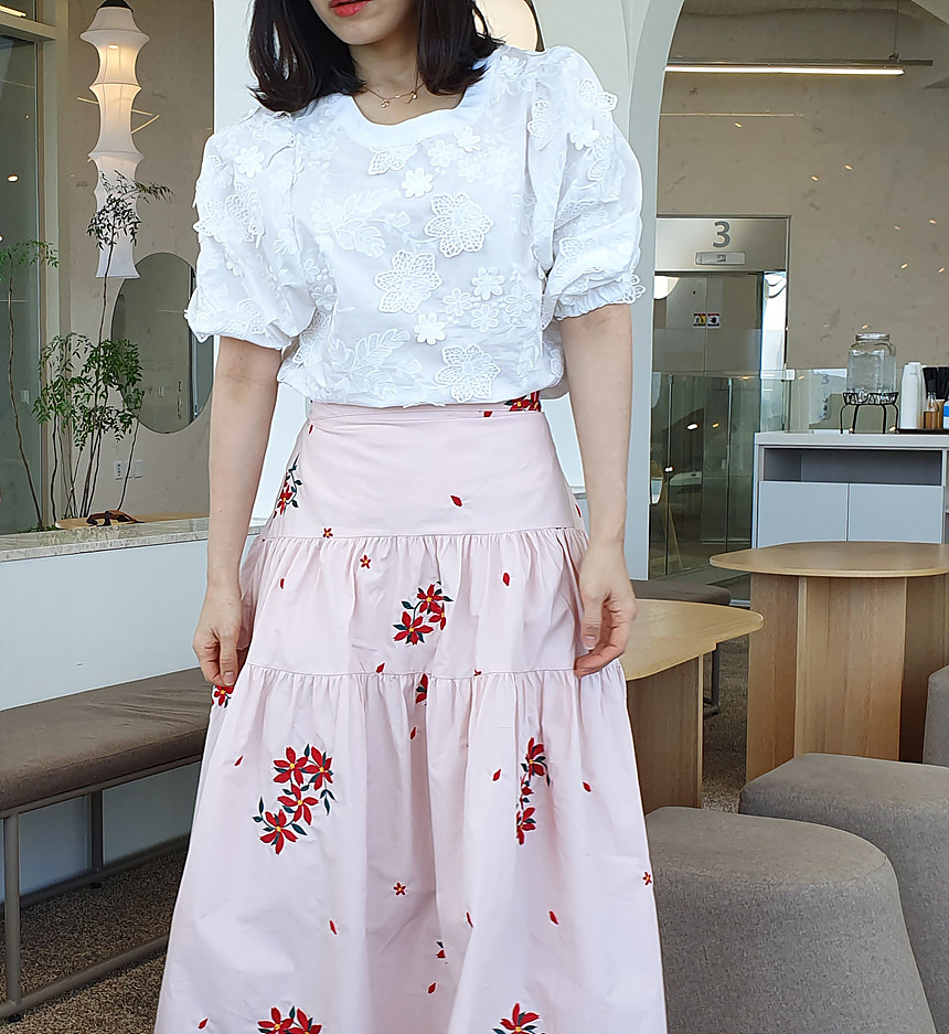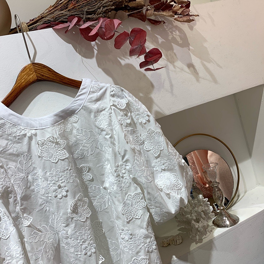 탄탄한 코튼 소재로 입체 플라워 자수 레이스가 포인트가 되는