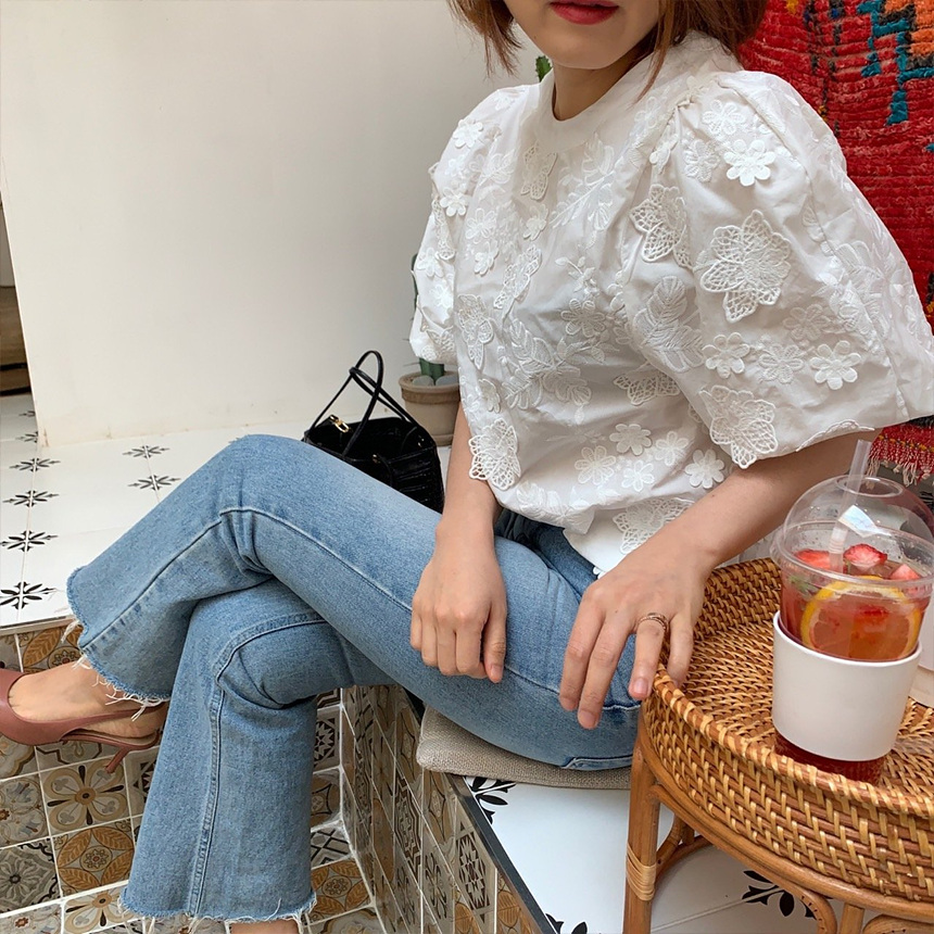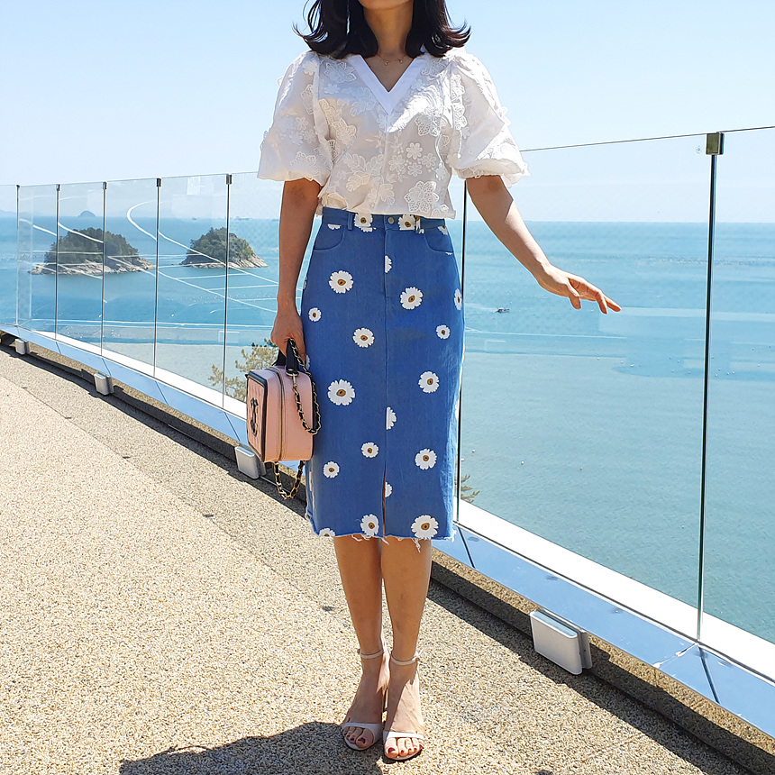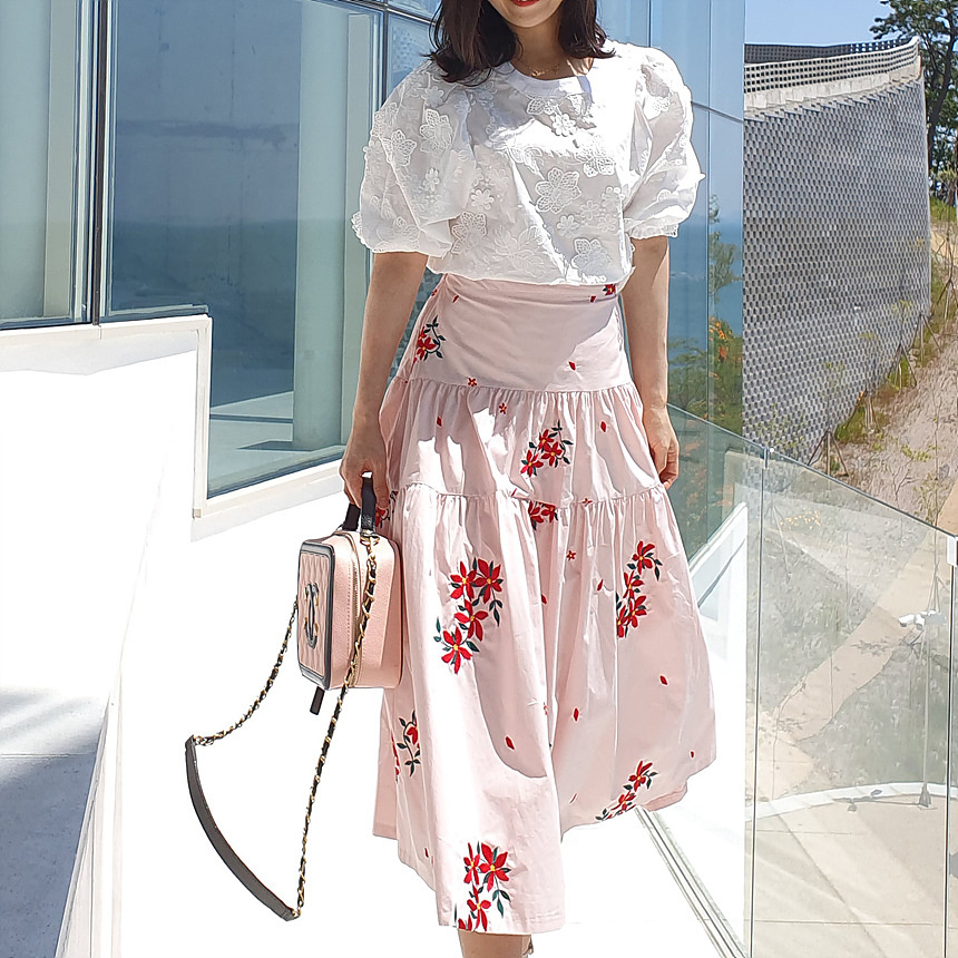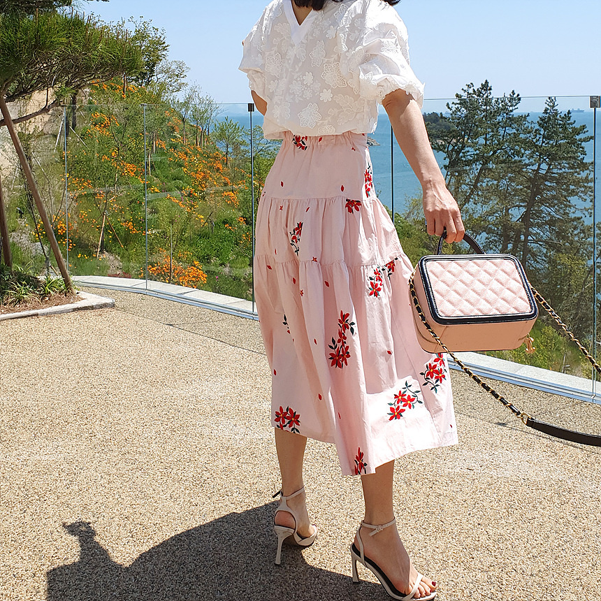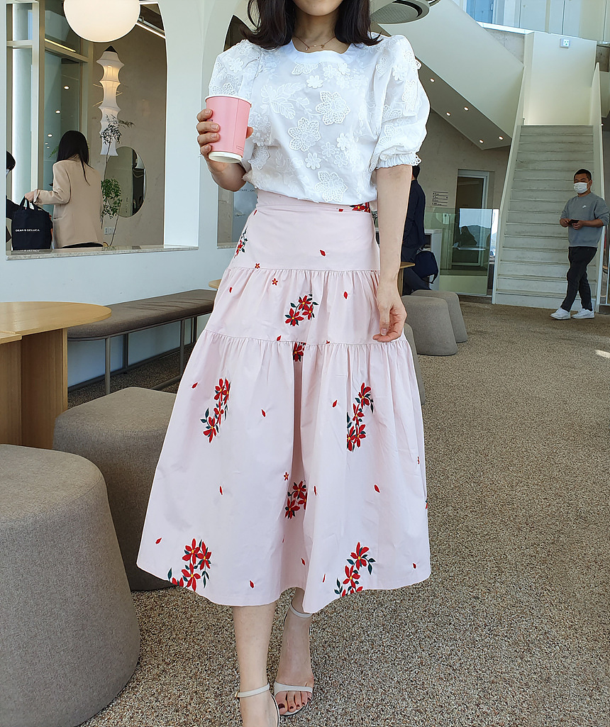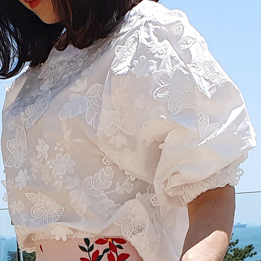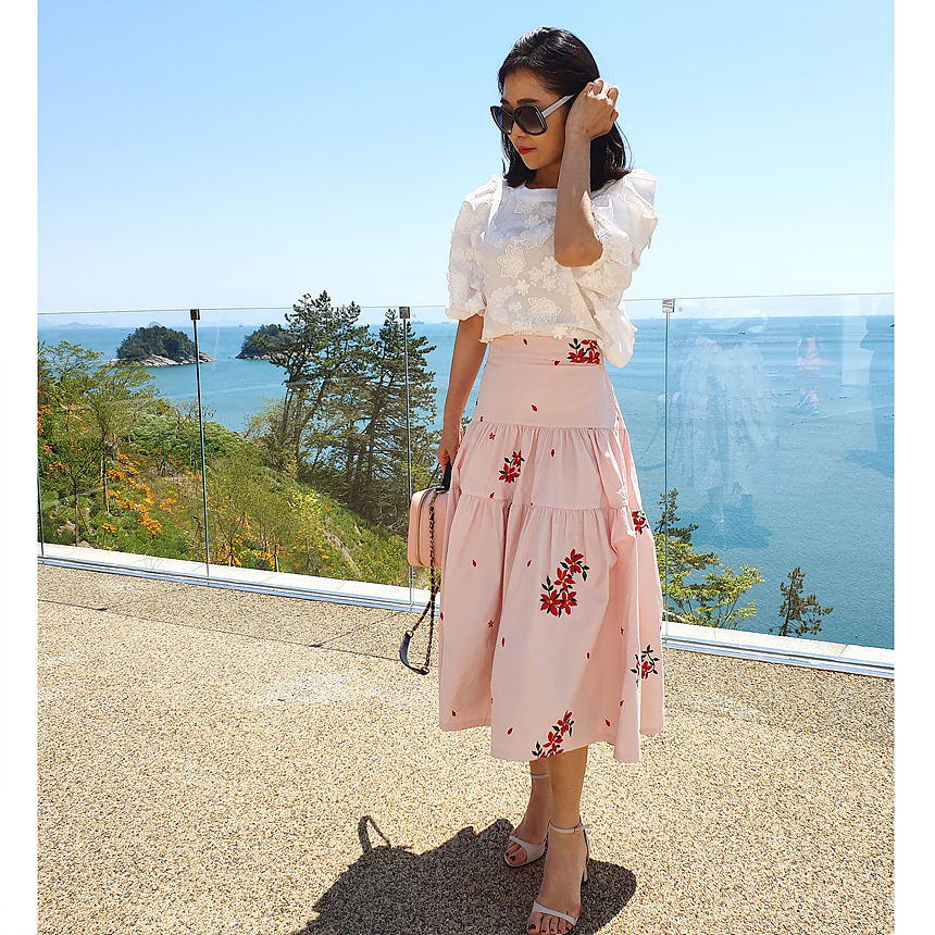 탄탄한 코튼 소재로 입체 플라워 자수 레이스가 포인트가 되는