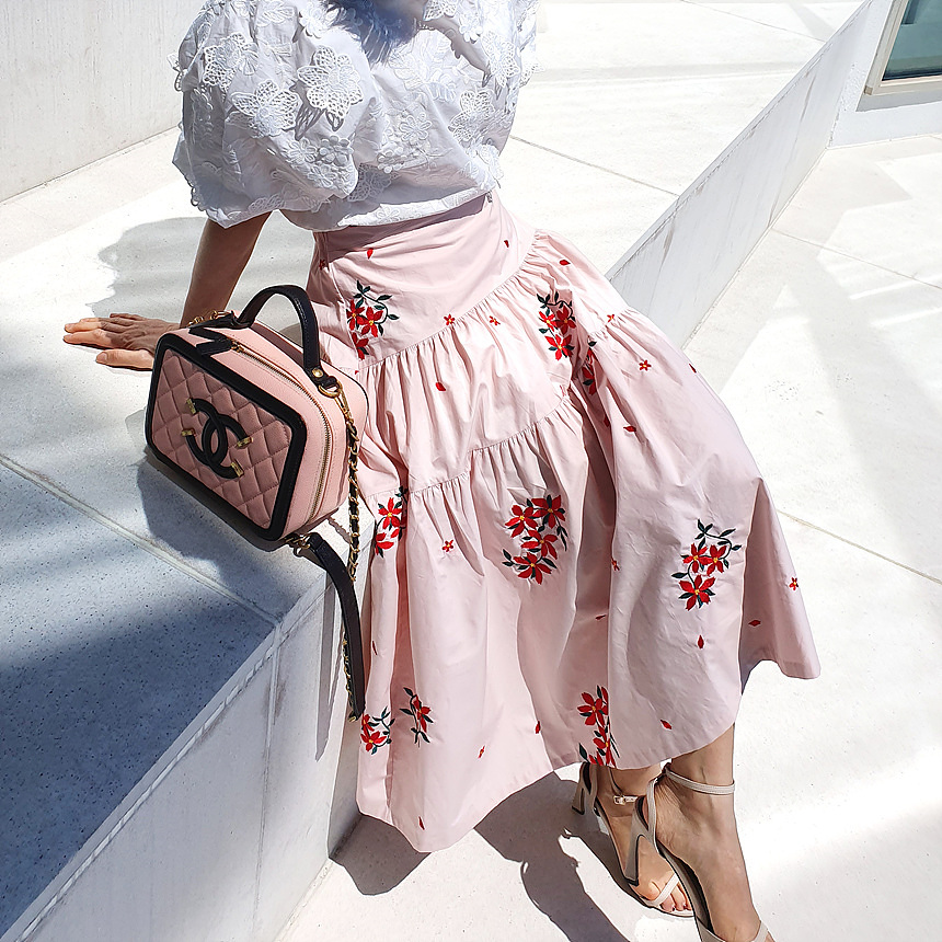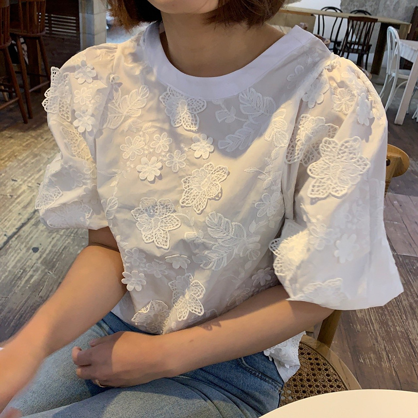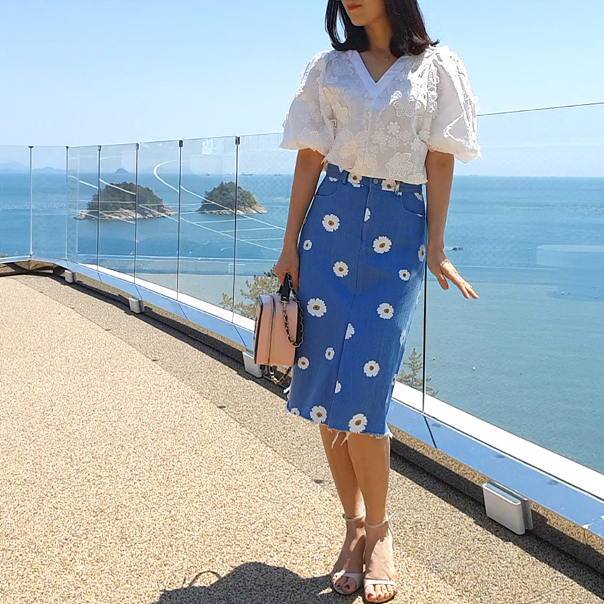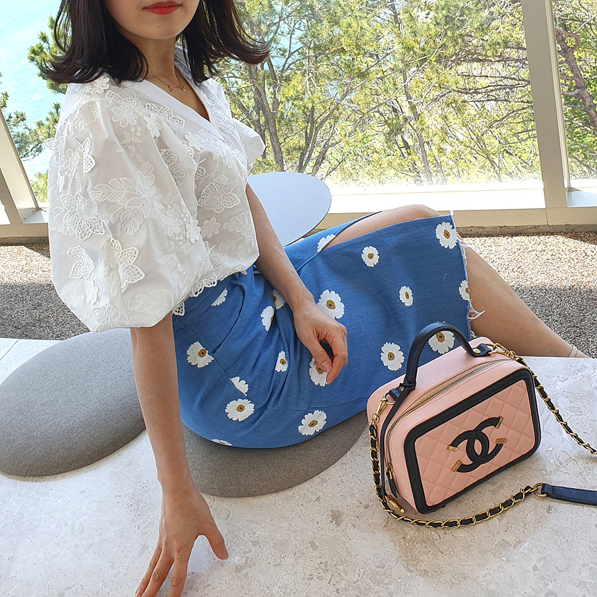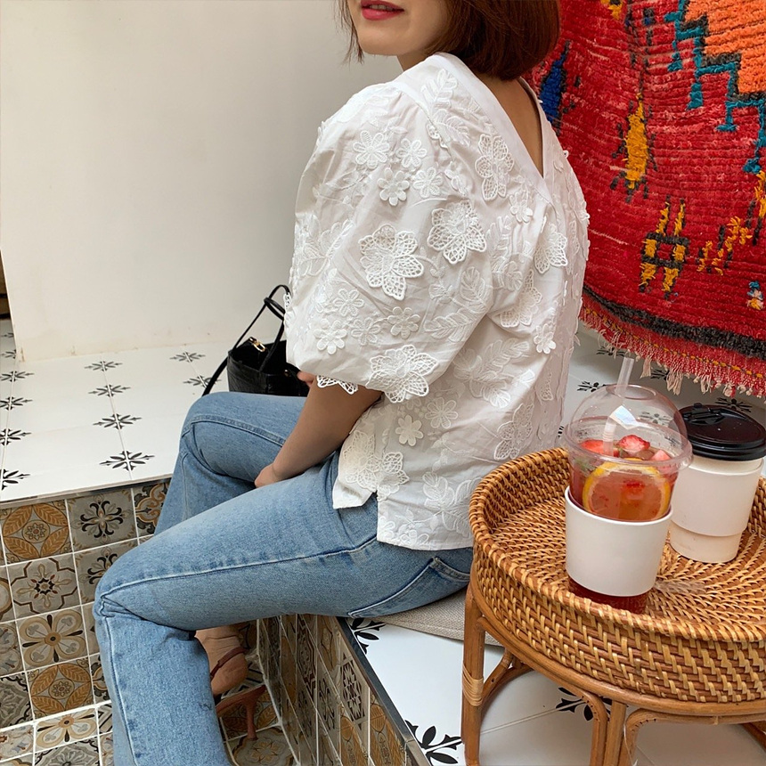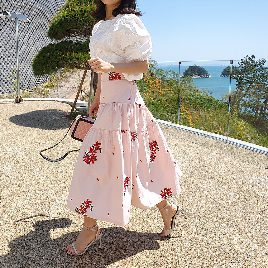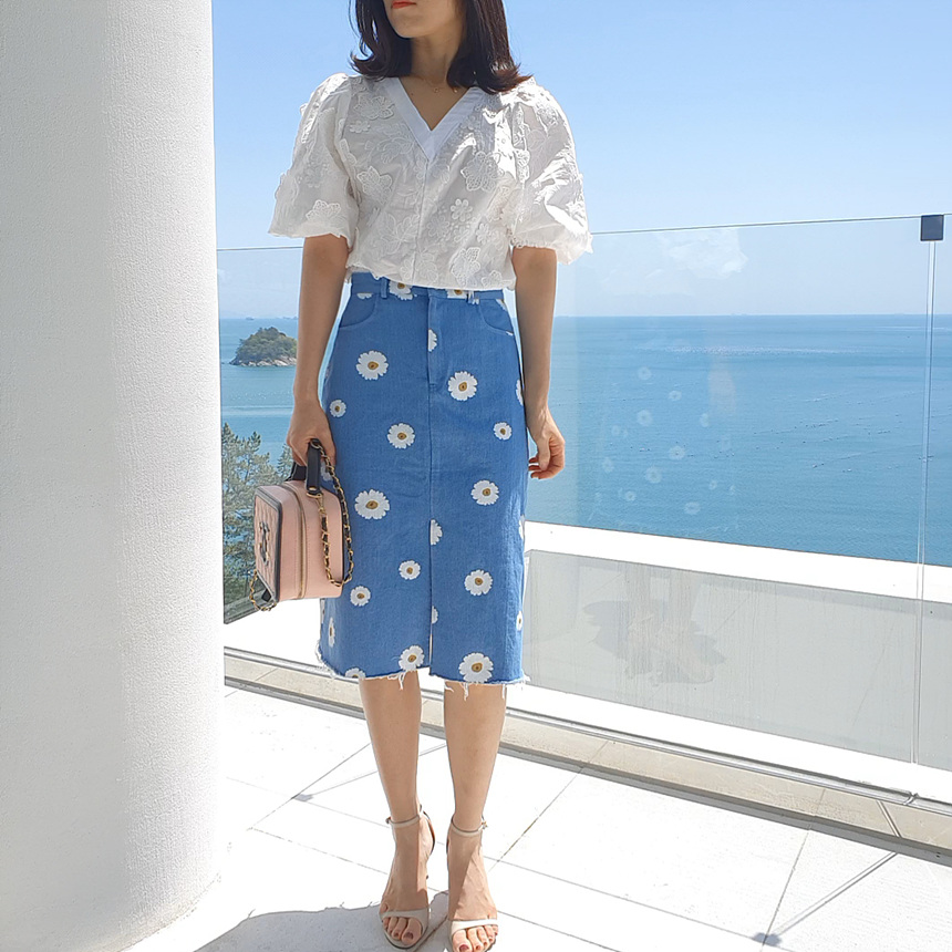 탄탄한 코튼 소재로 입체 플라워 자수 레이스가 포인트가 되는