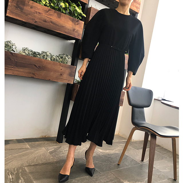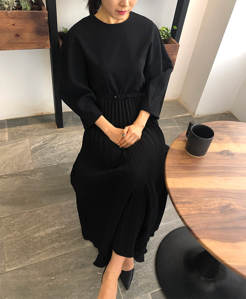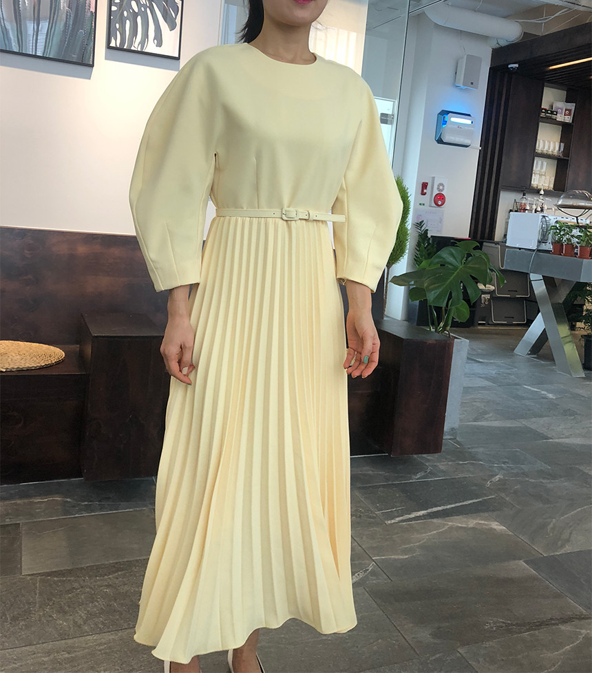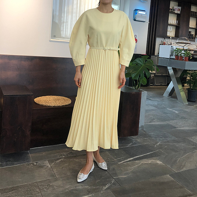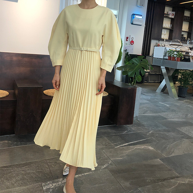 바로발송 쉬폰 벌룬 플리츠 맥시 원피스