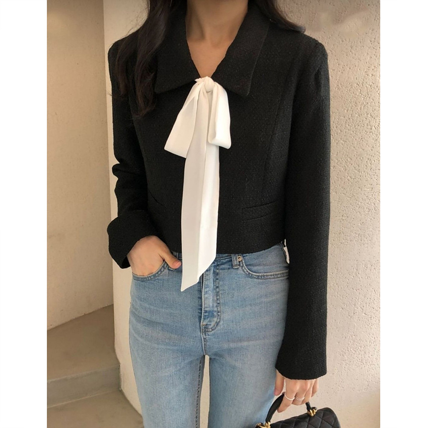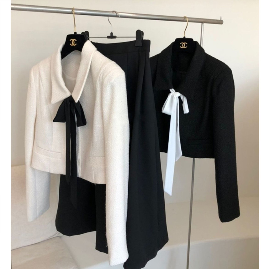 바로발송 메이 리본 타이 트위드 숏 자켓