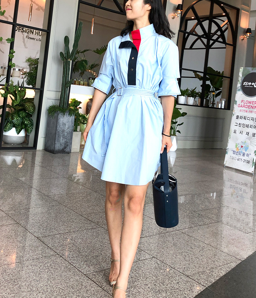 창고정리 / 바로발송 하이넥 포인트 점퍼형 원피스