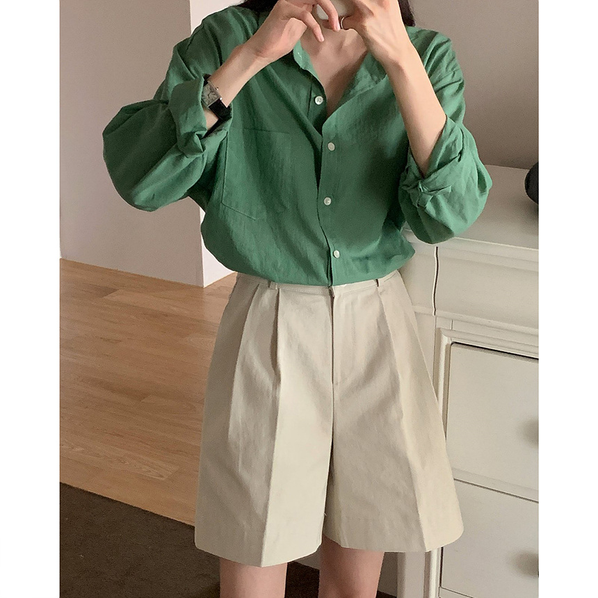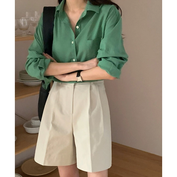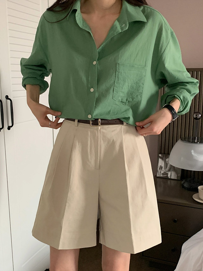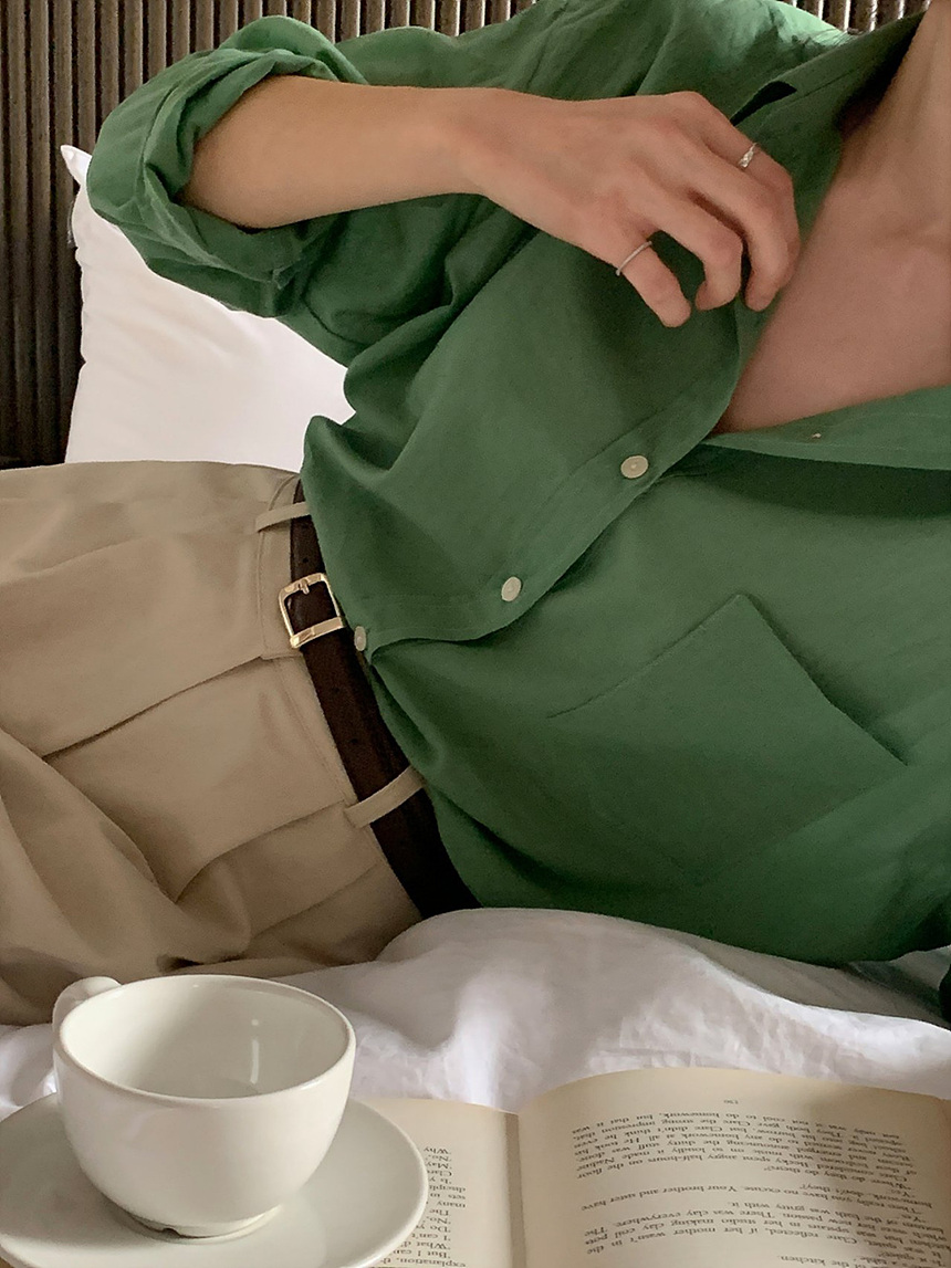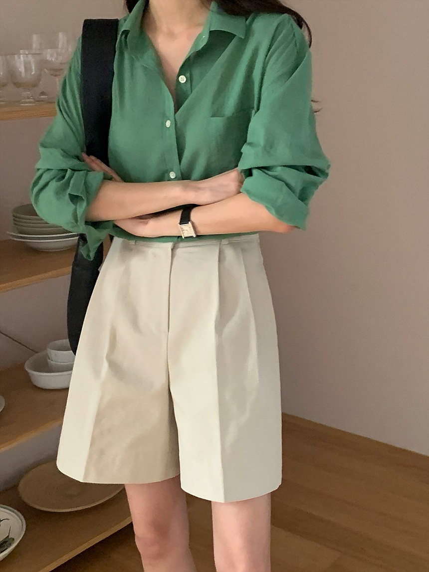 핀턱 디테일과 하이웨이스트 라인이 더욱 날씬한 룩을 연출 해 줍니다