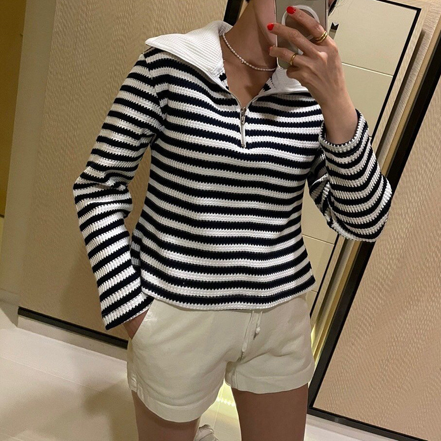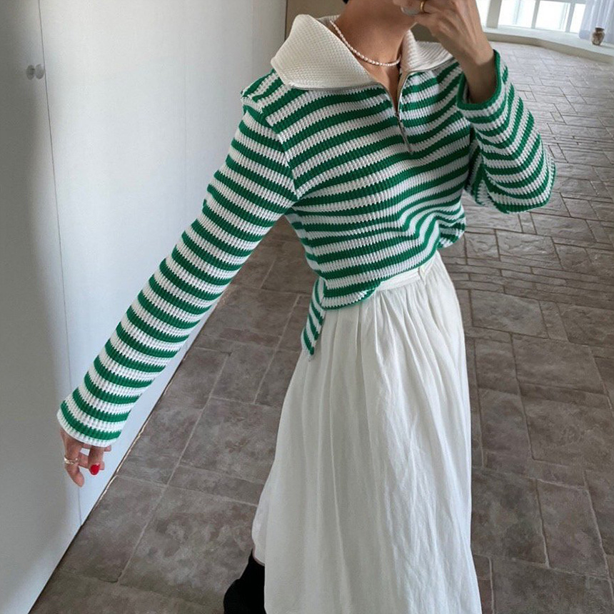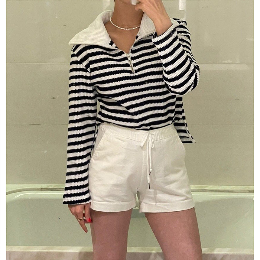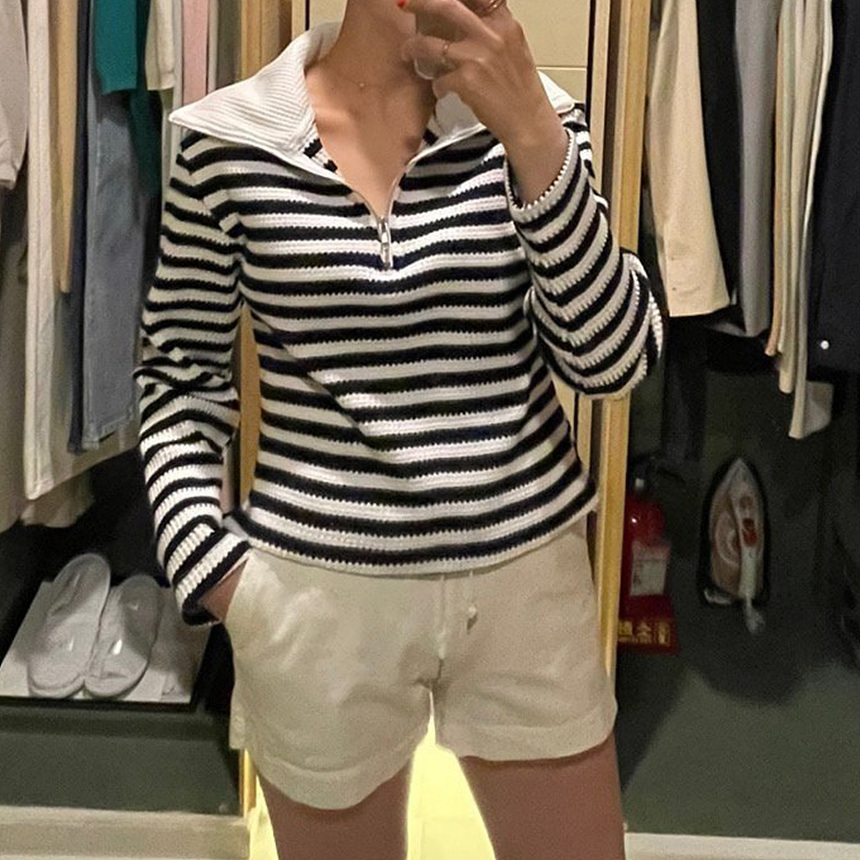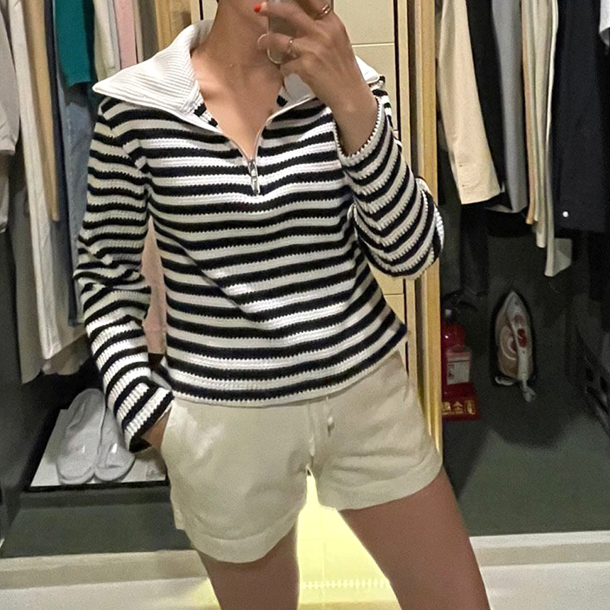 바로발송 미오 배색 빅카라 반집업 스트라이프 티