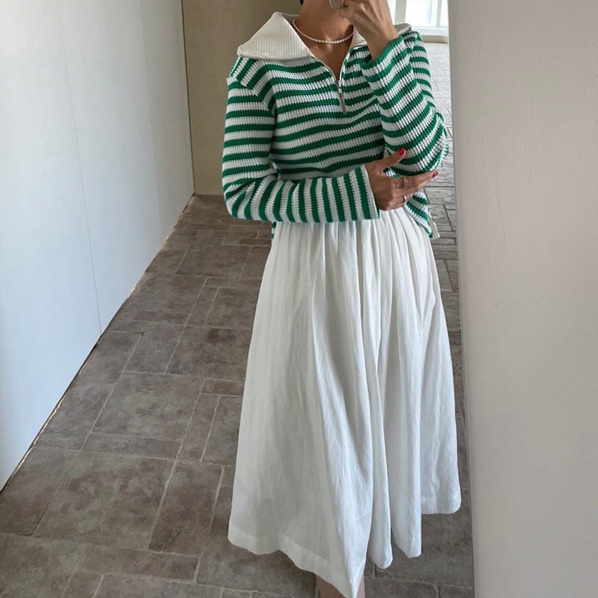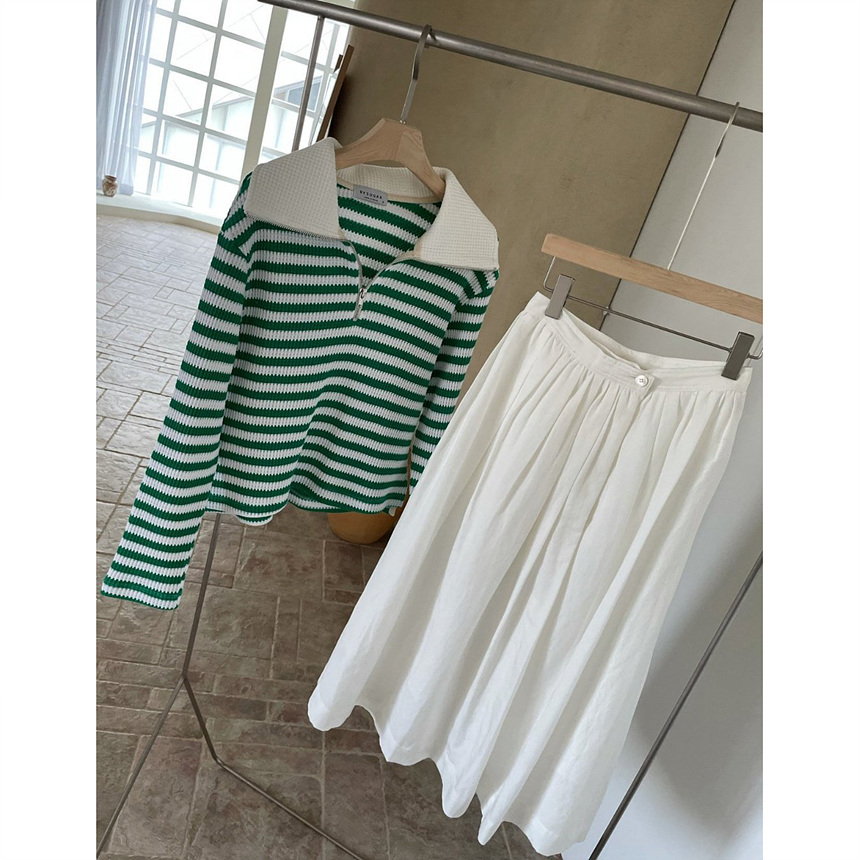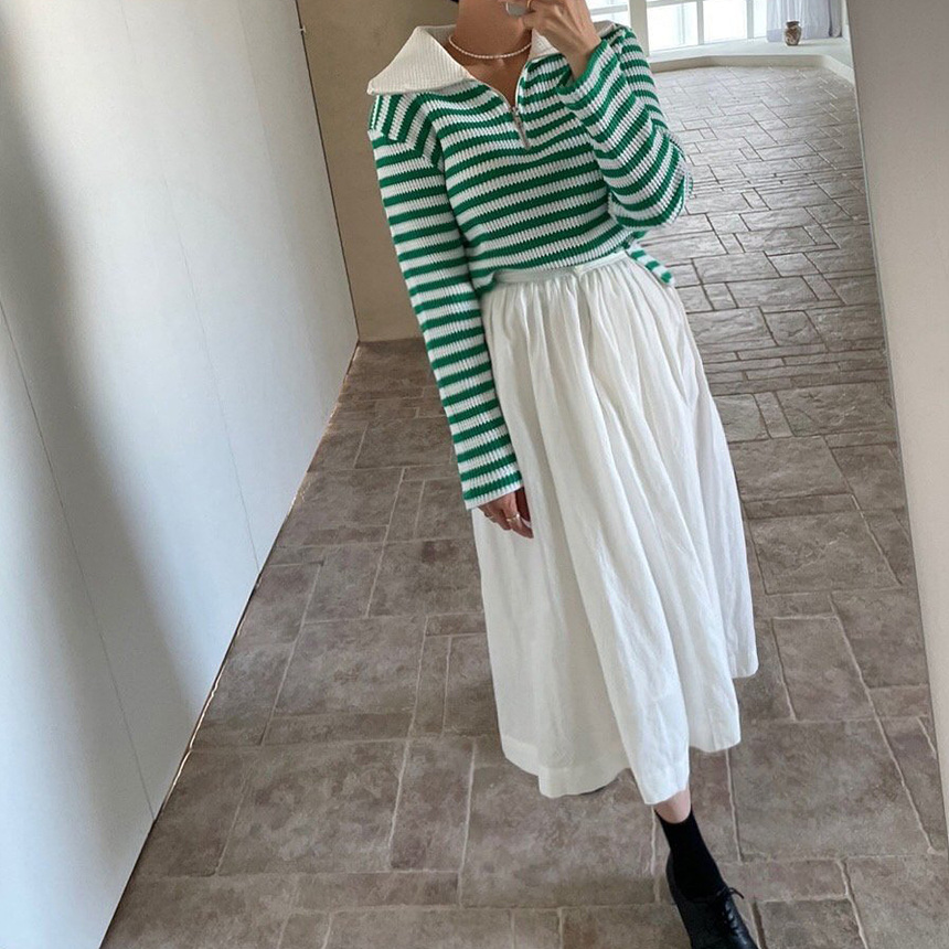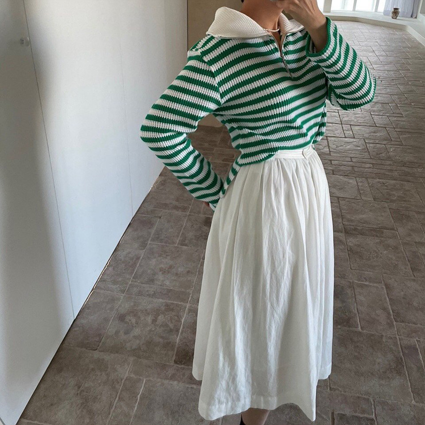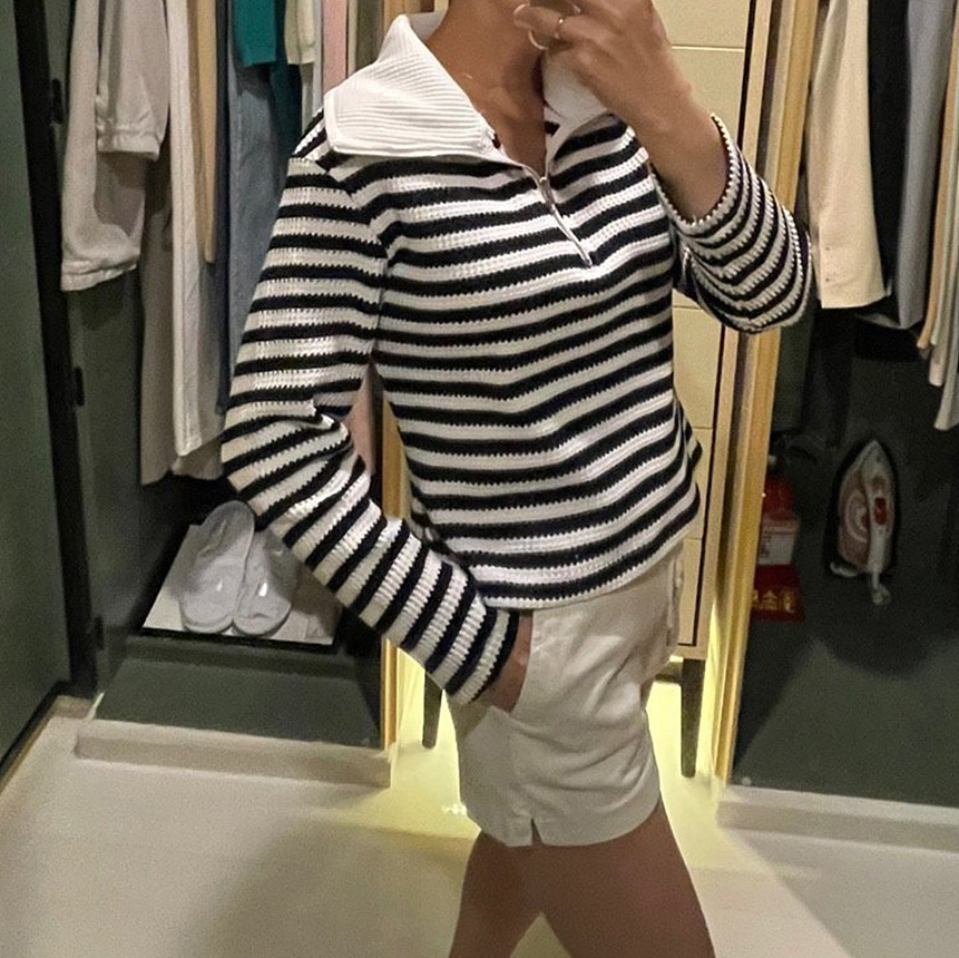 바로발송 미오 배색 빅카라 반집업 스트라이프 티