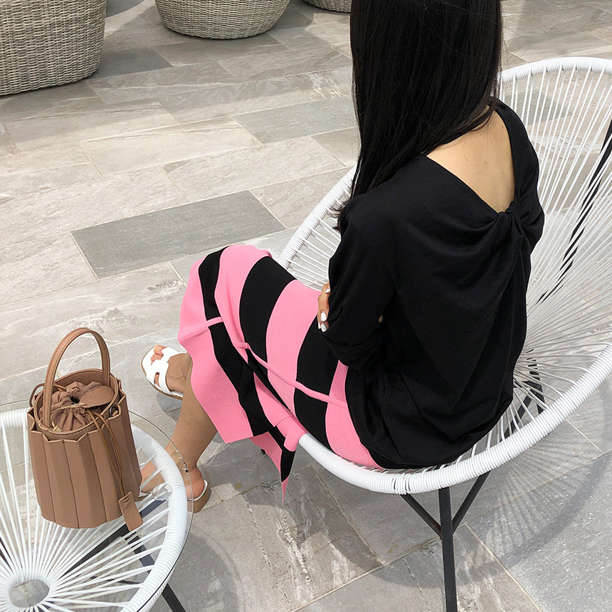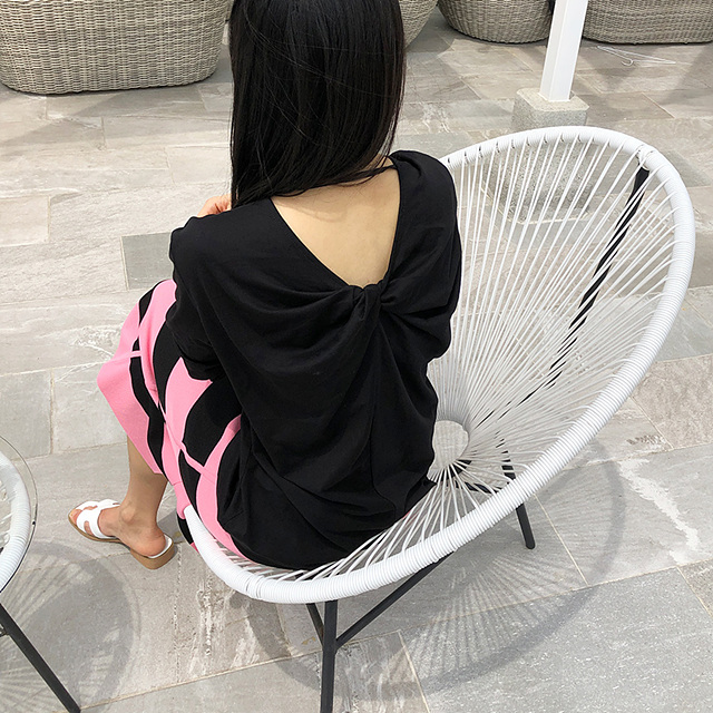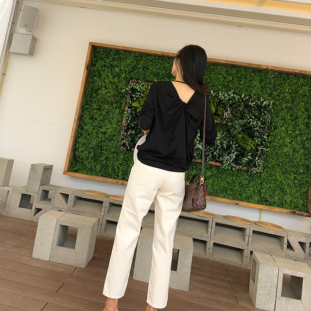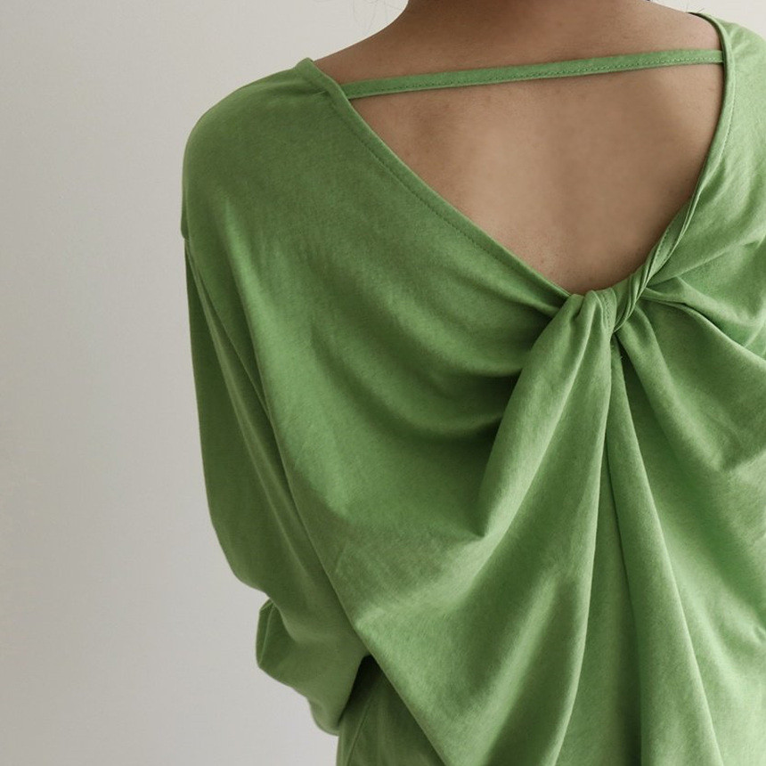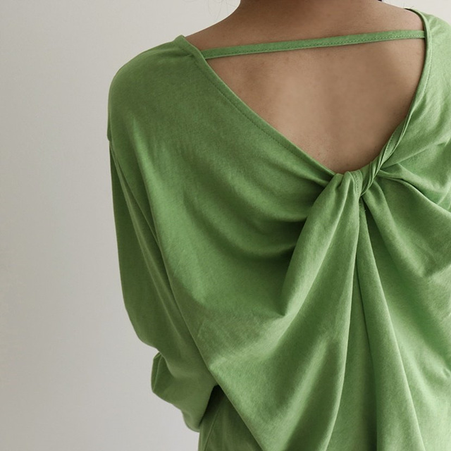 심플한 디자인 인듯하지만 뒤쪽에 브이넥으로 파여 꼬임장식이 되어있는