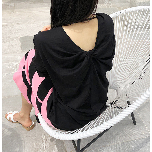루즈핏 뒤 꼬임 유니크 티셔츠