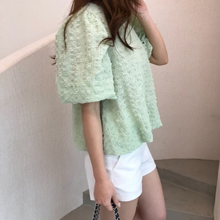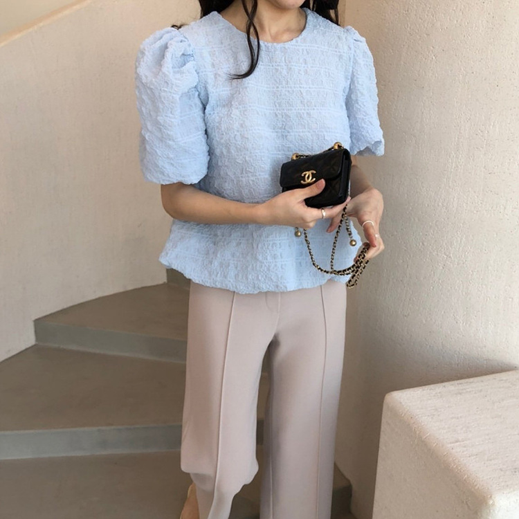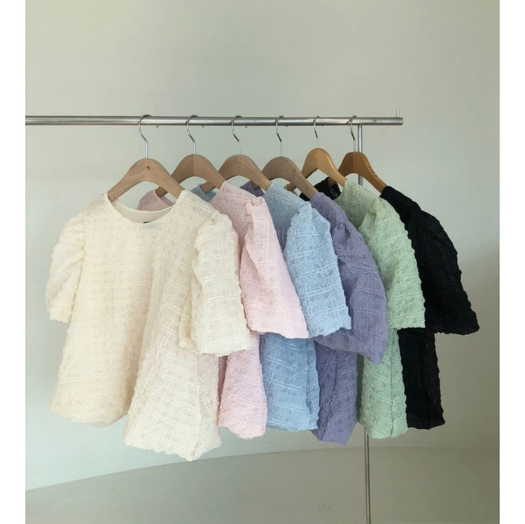 인기상품 롤린 반팔 퍼프 블라우스