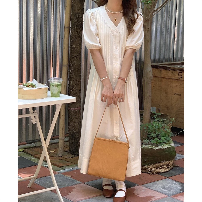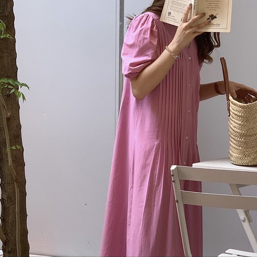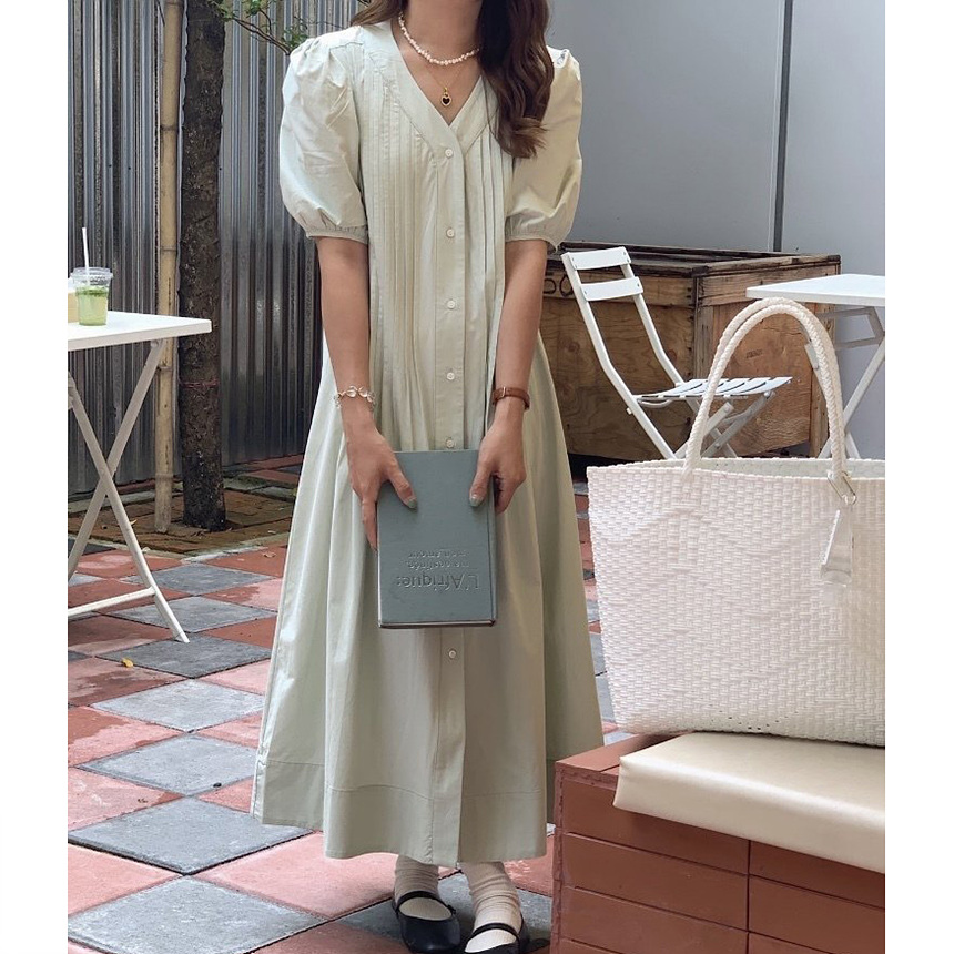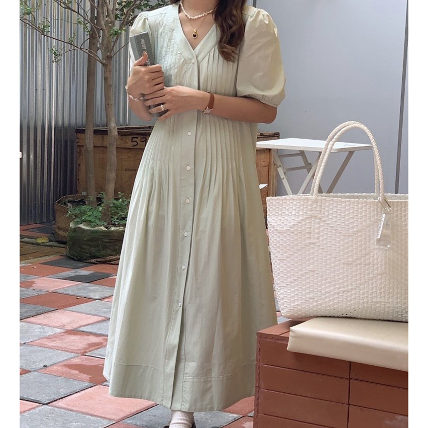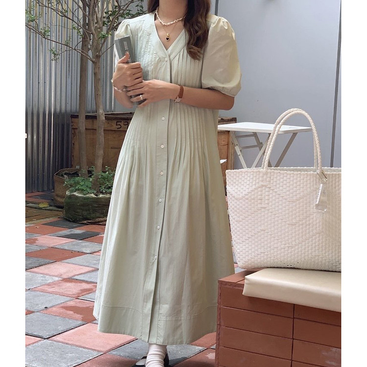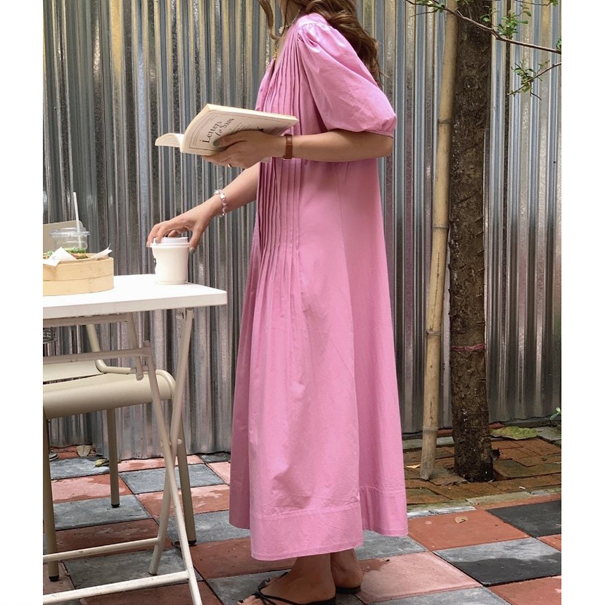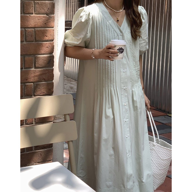 레이 핀턱 롱 원피스