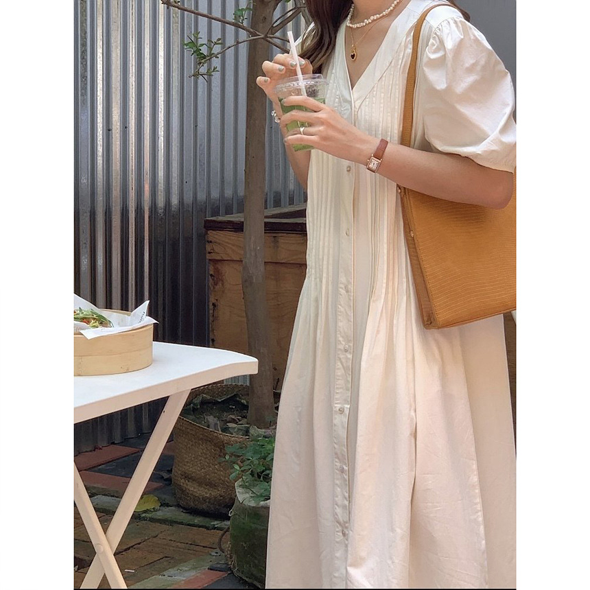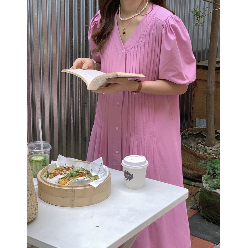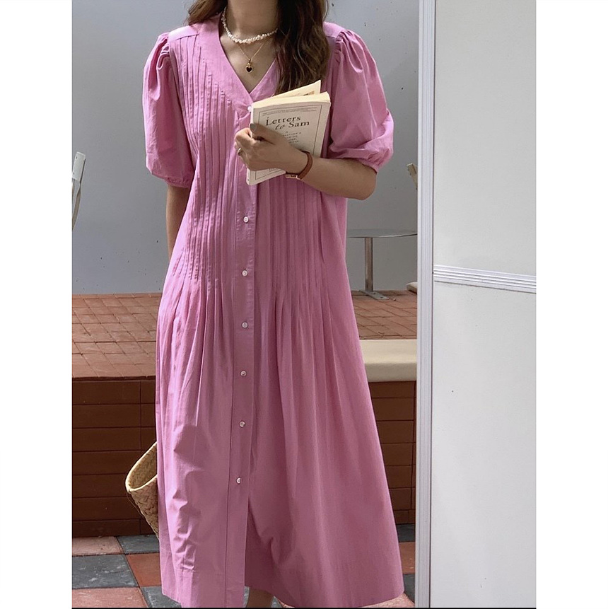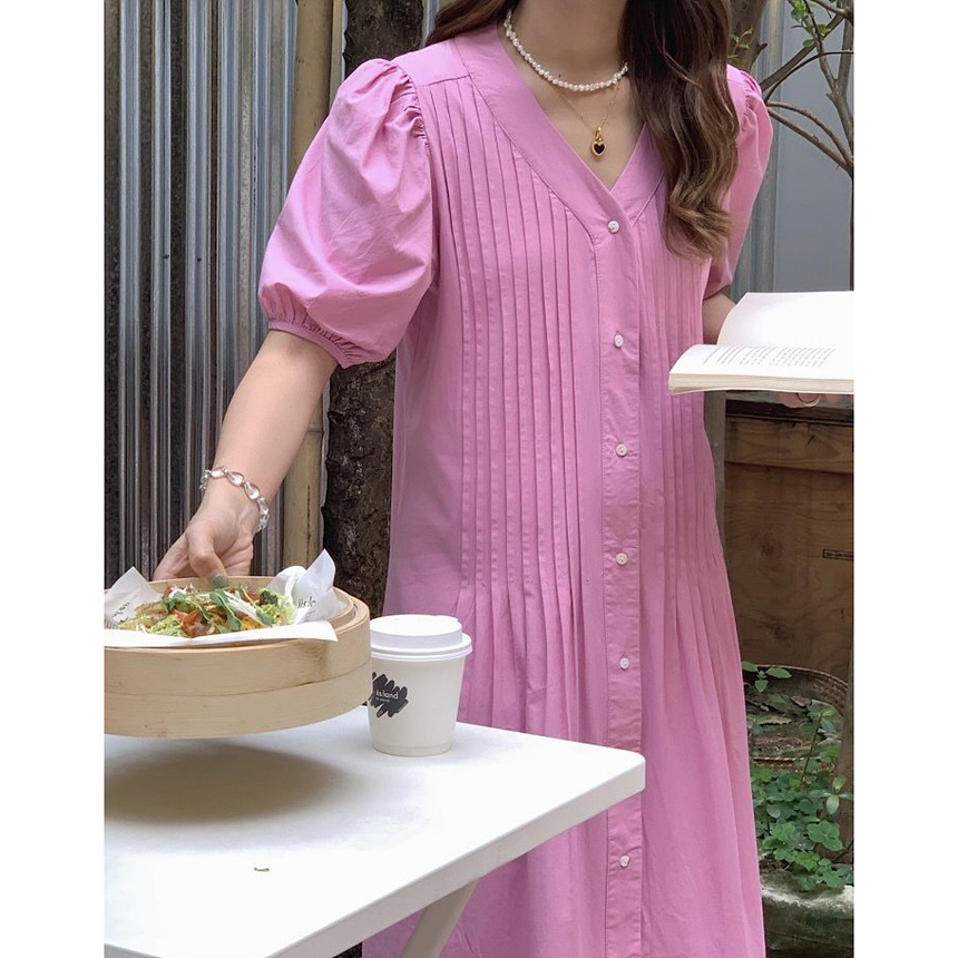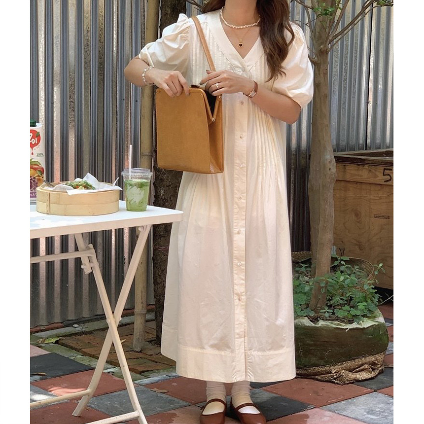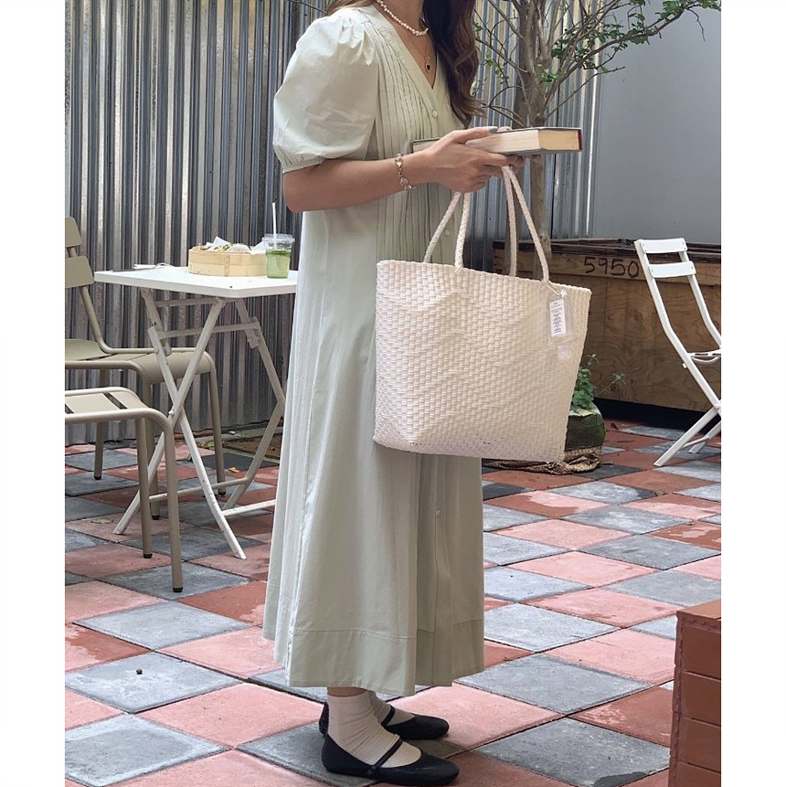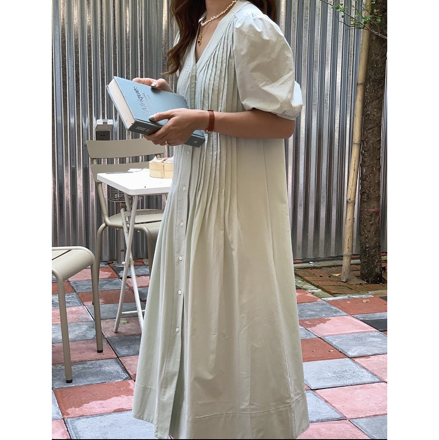 레이 핀턱 롱 원피스
