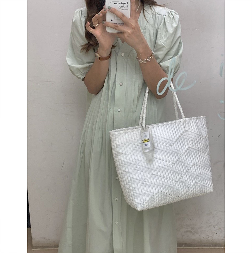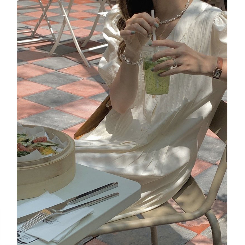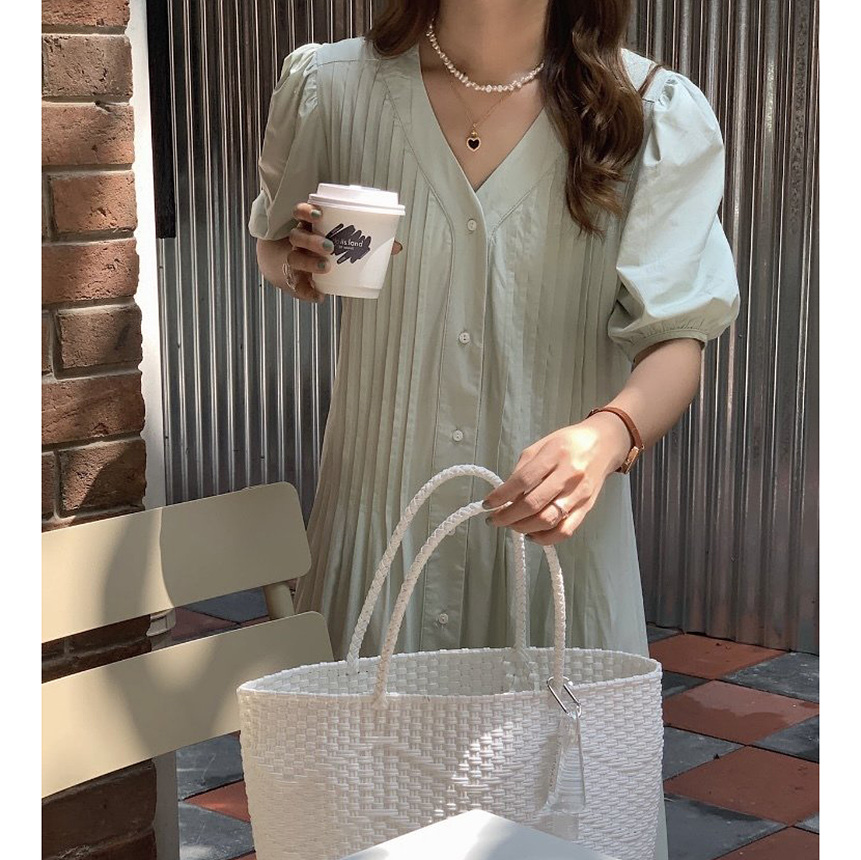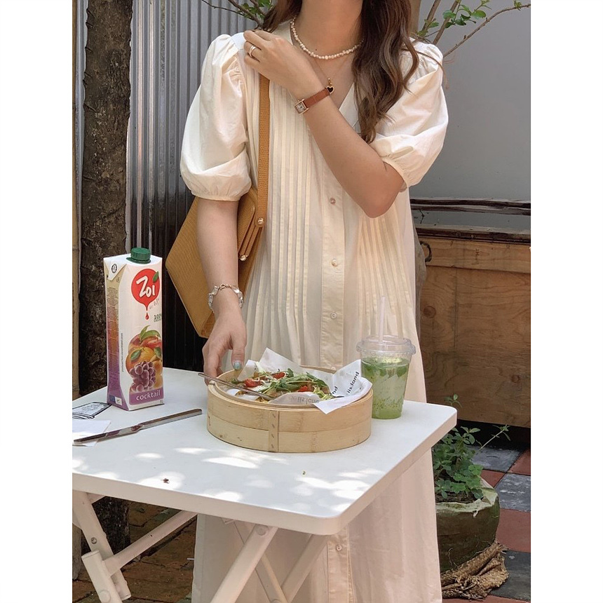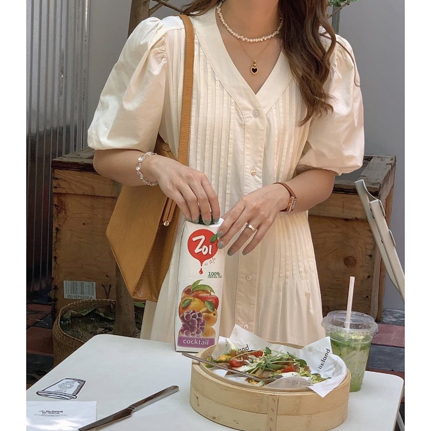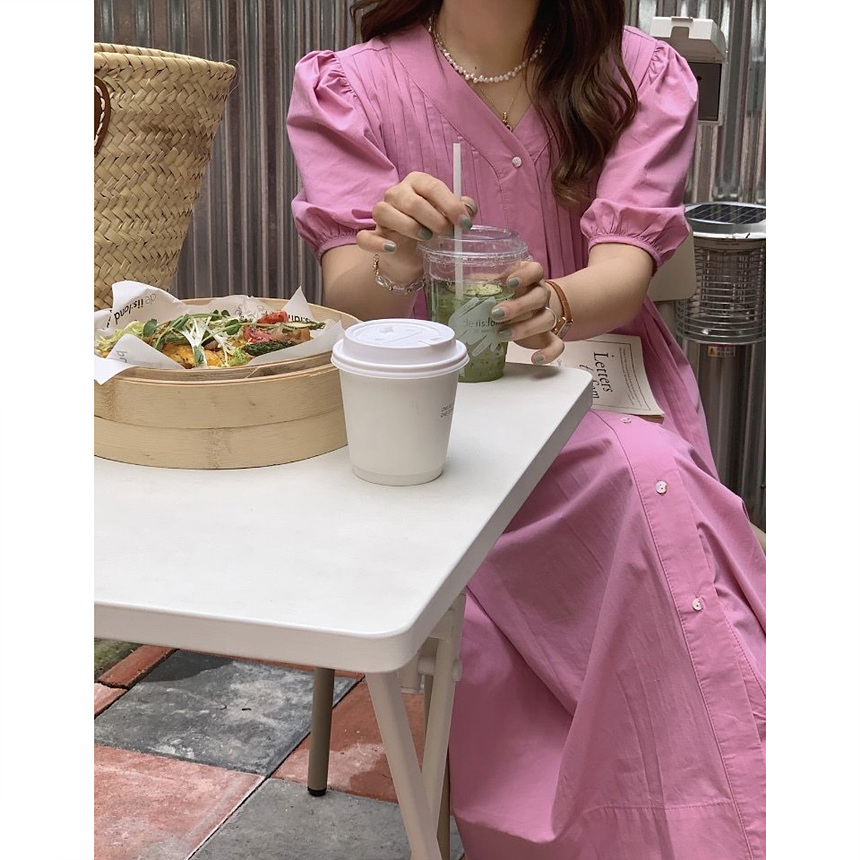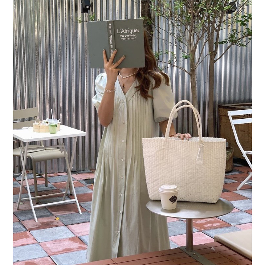 레이 핀턱 롱 원피스