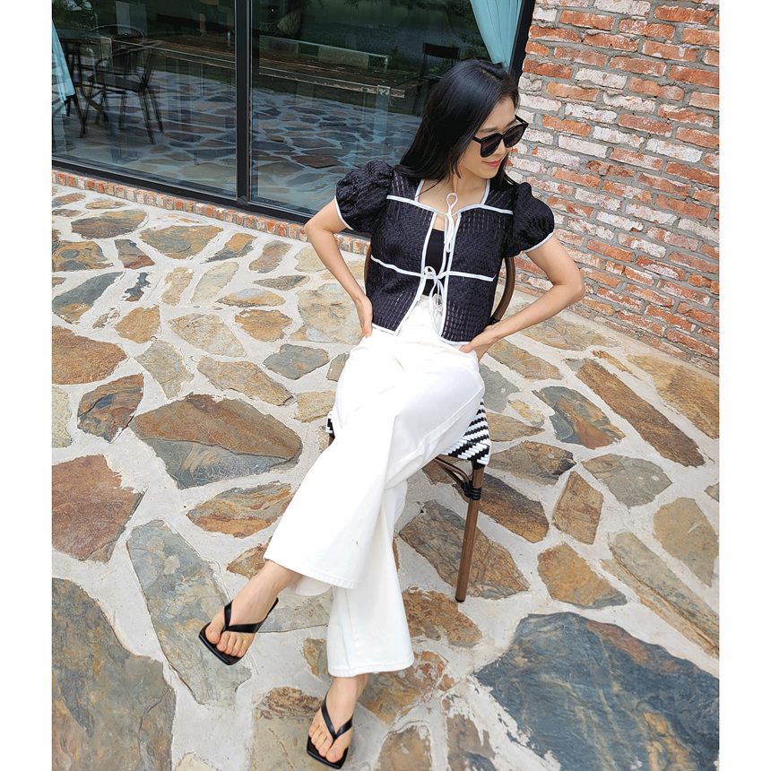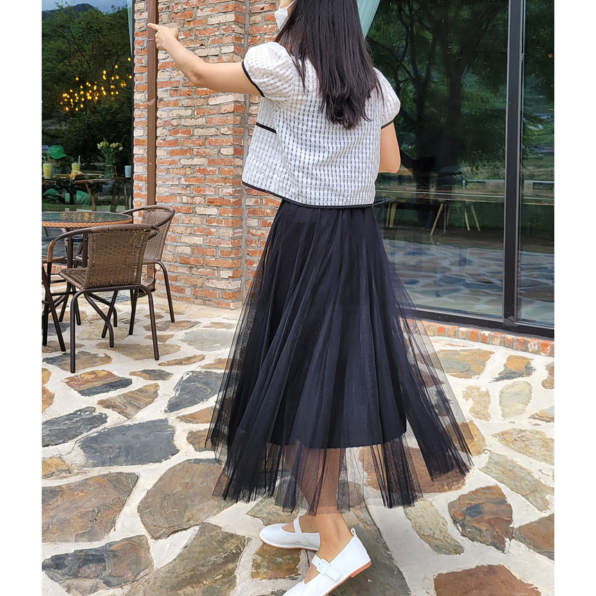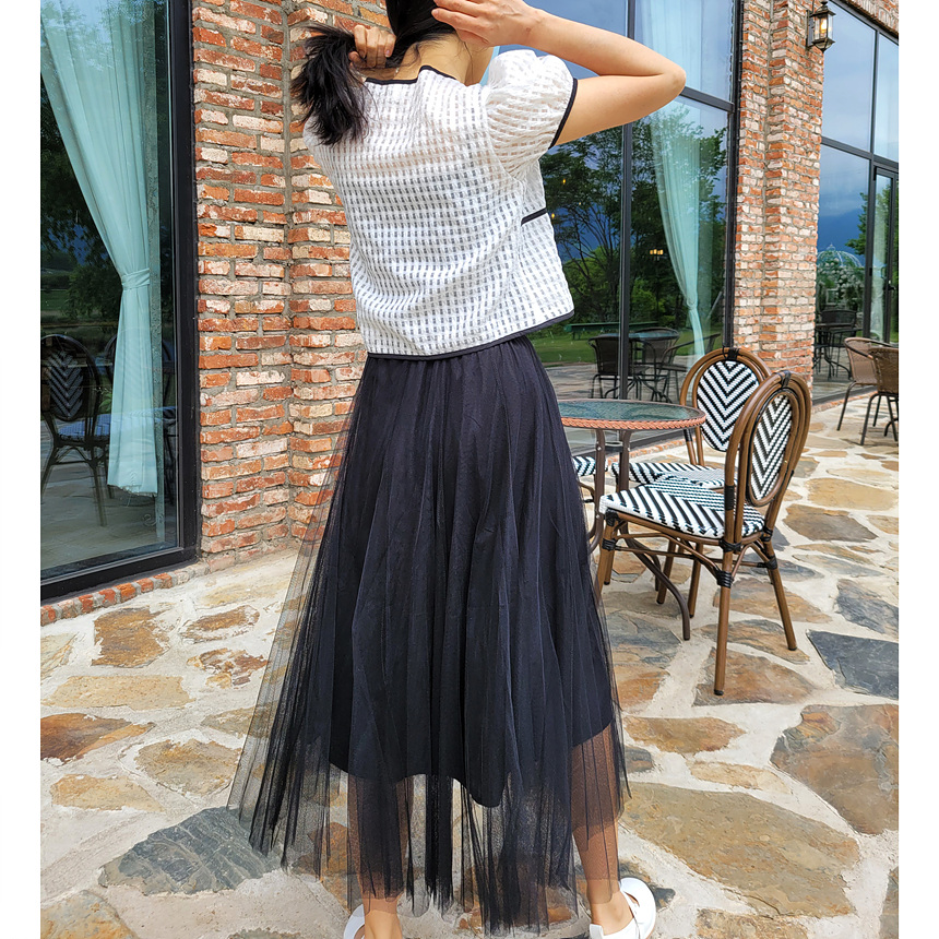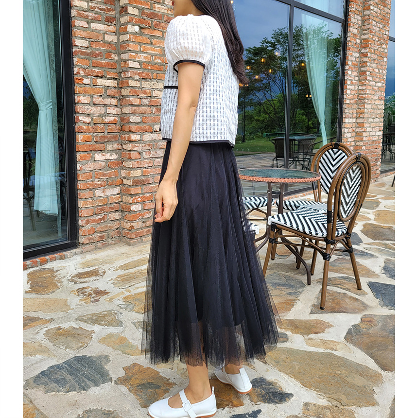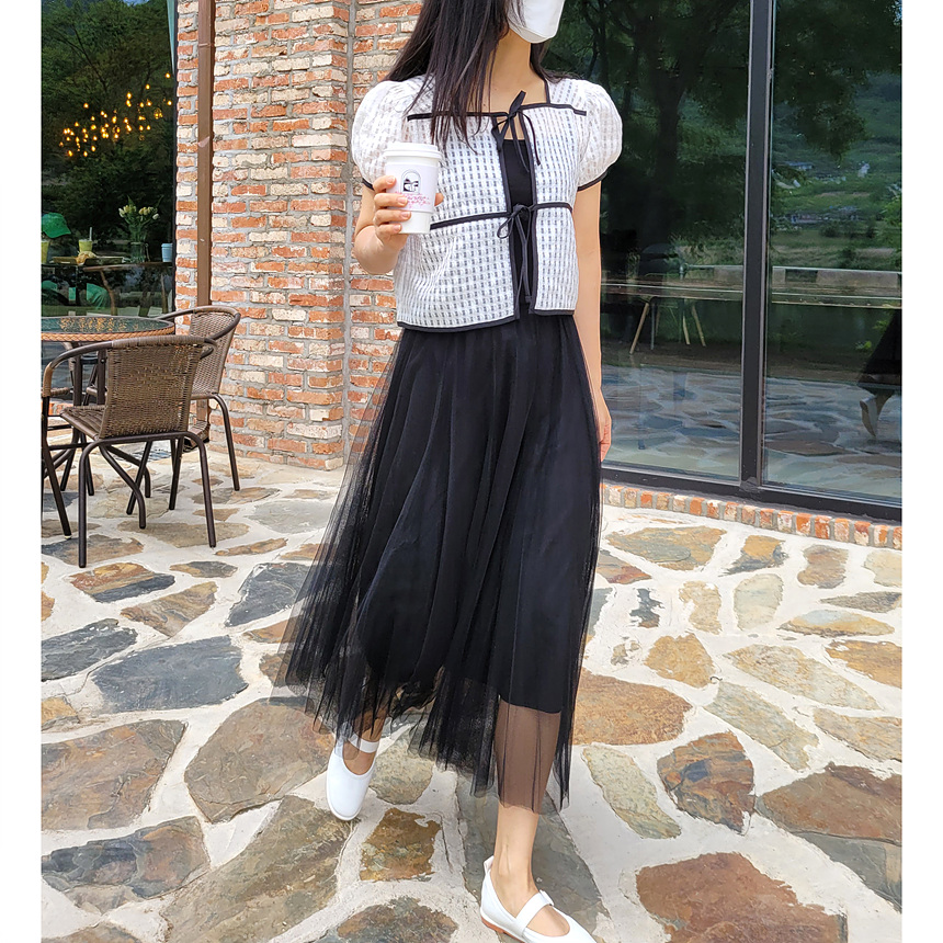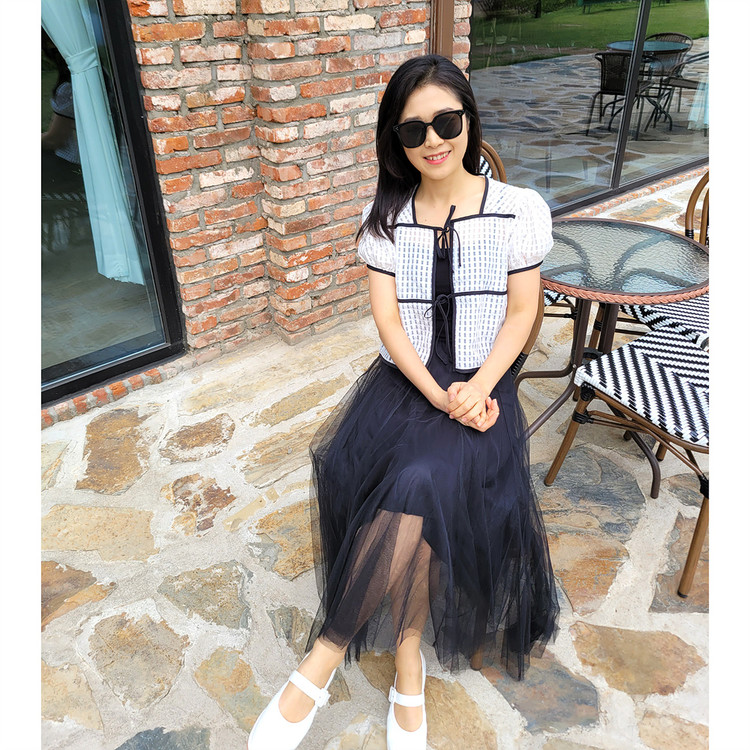 바로발송 체크 시스루 퍼프 가디건 블라우스