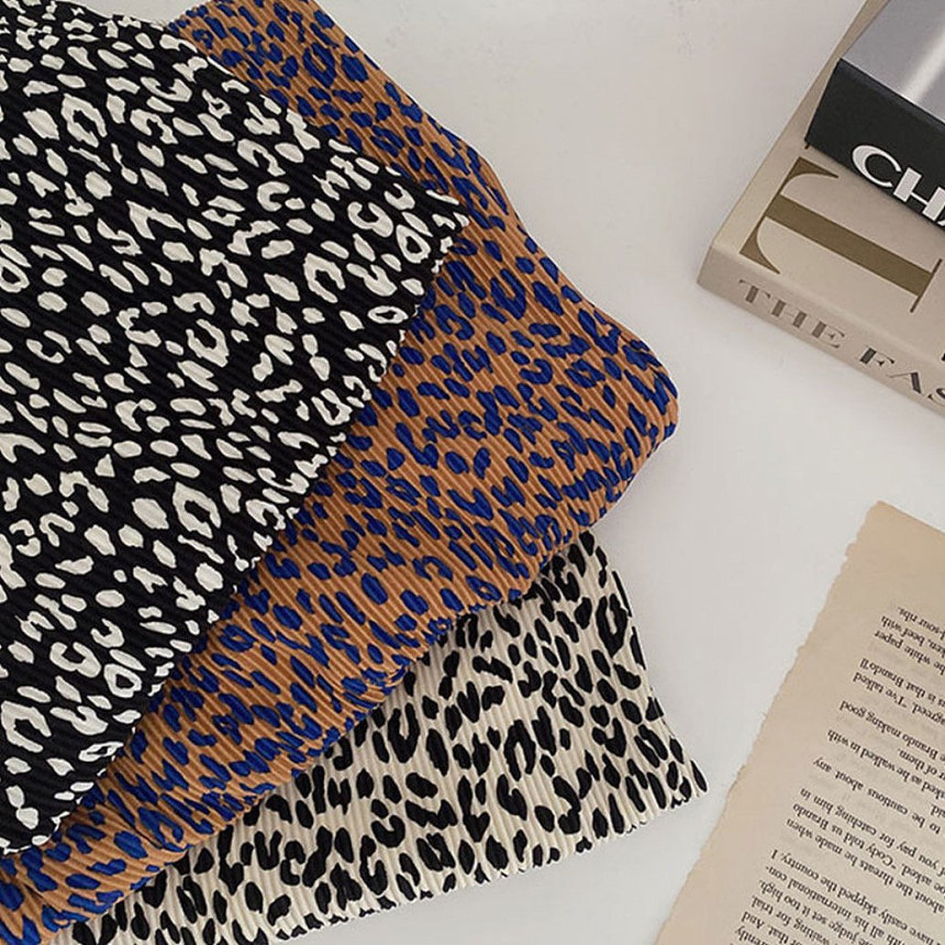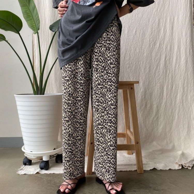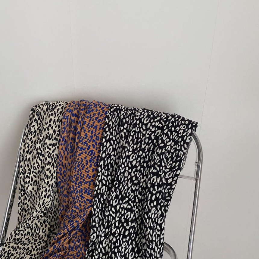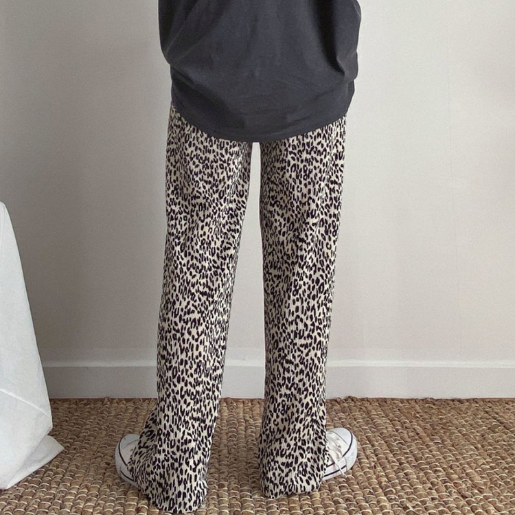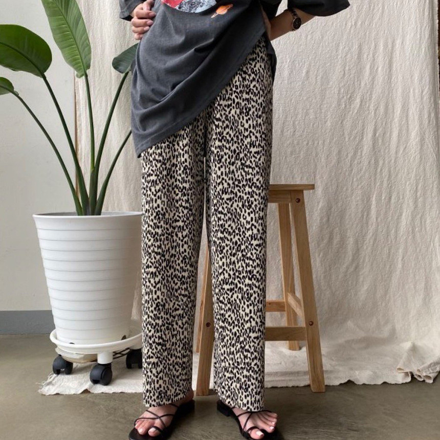 호피 플리츠 일자 밴딩 롱 팬츠