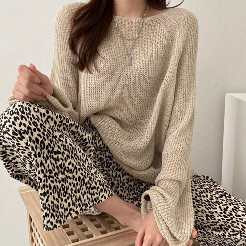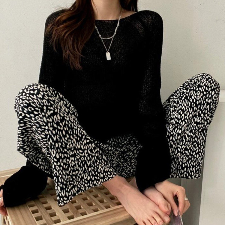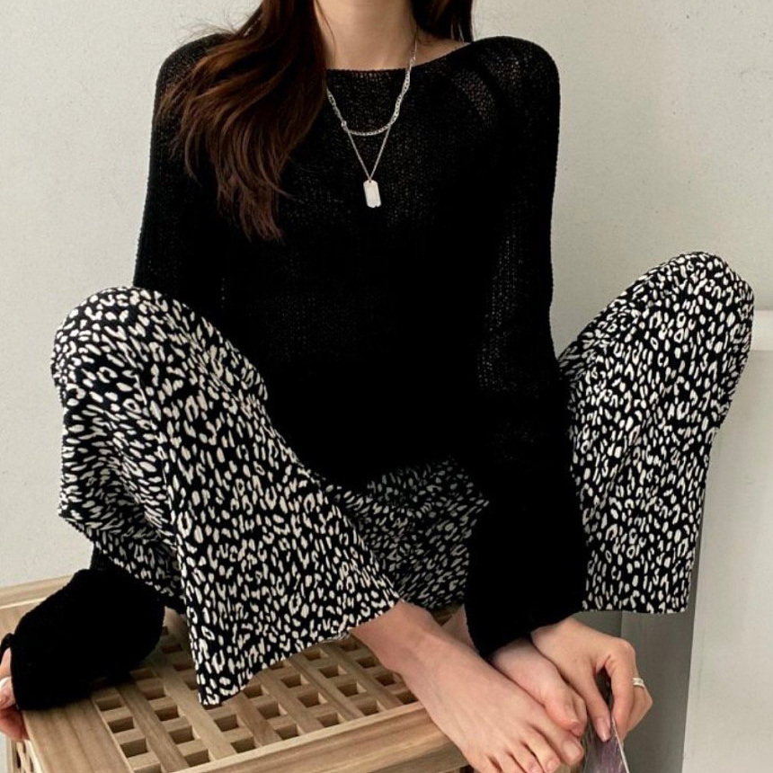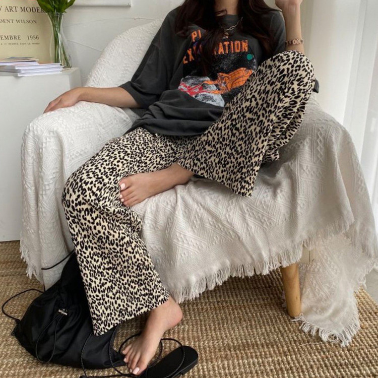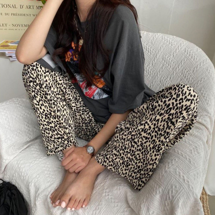 호피 플리츠 일자 밴딩 롱 팬츠