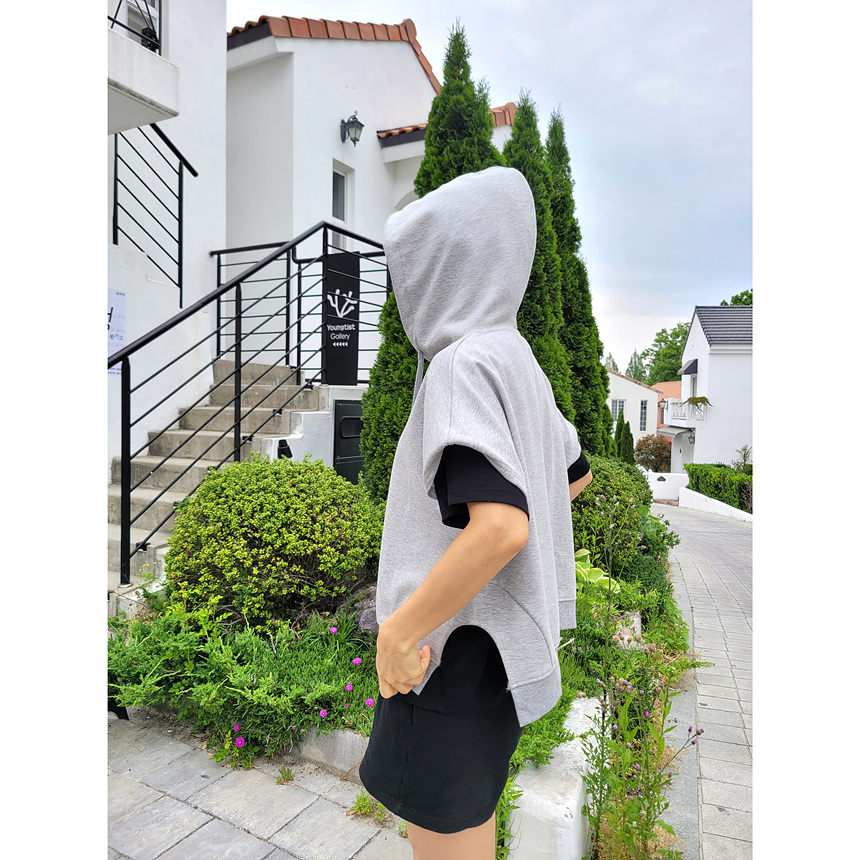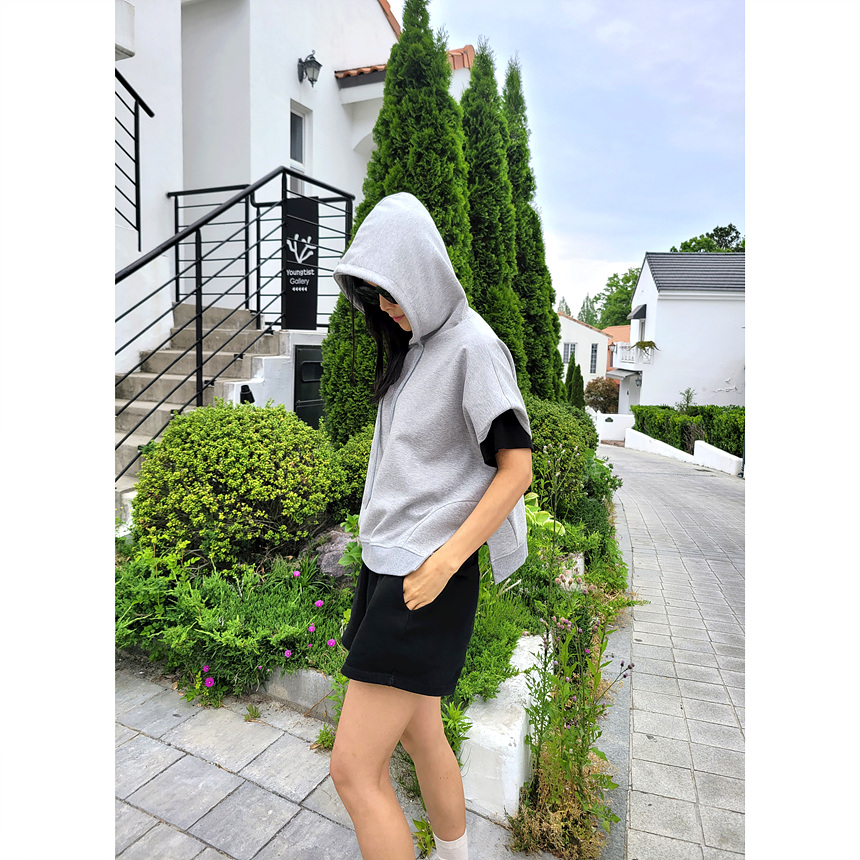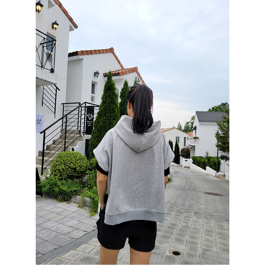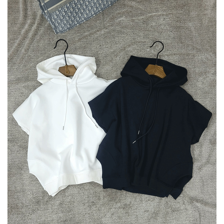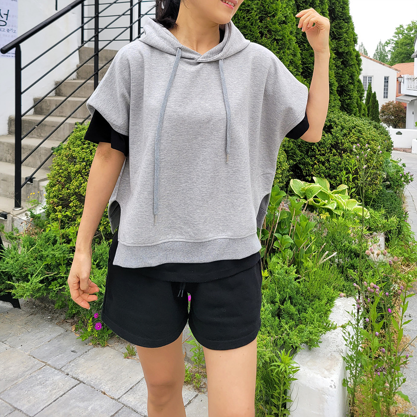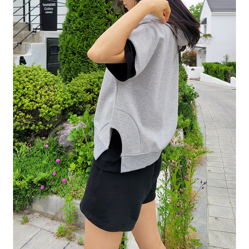 하이퀄리티 유니크 반소매 후드 맨투맨