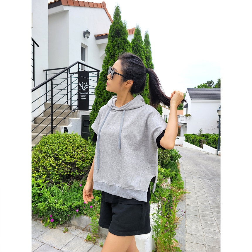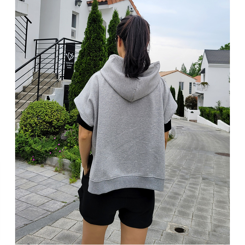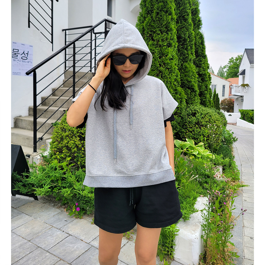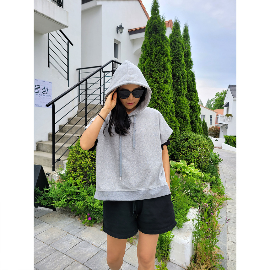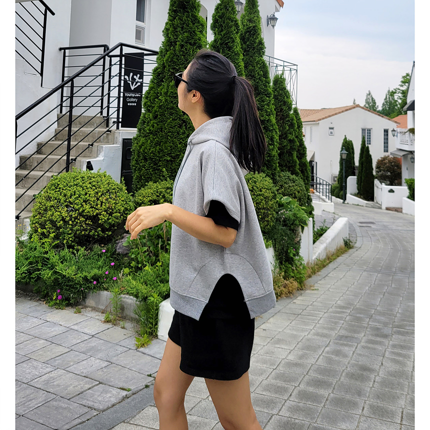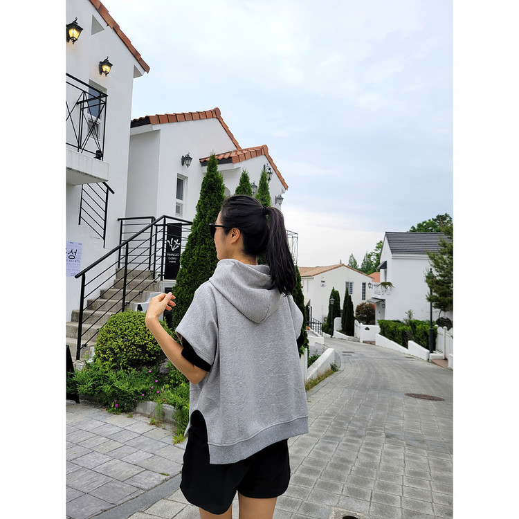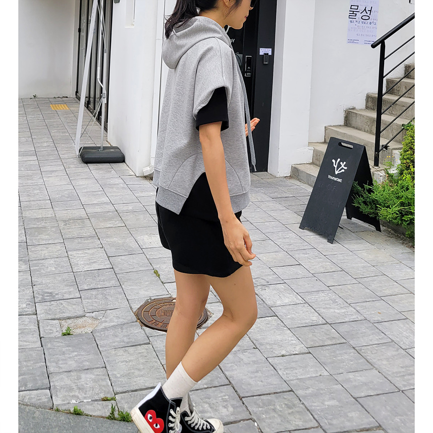 하이퀄리티 유니크 반소매 후드 맨투맨