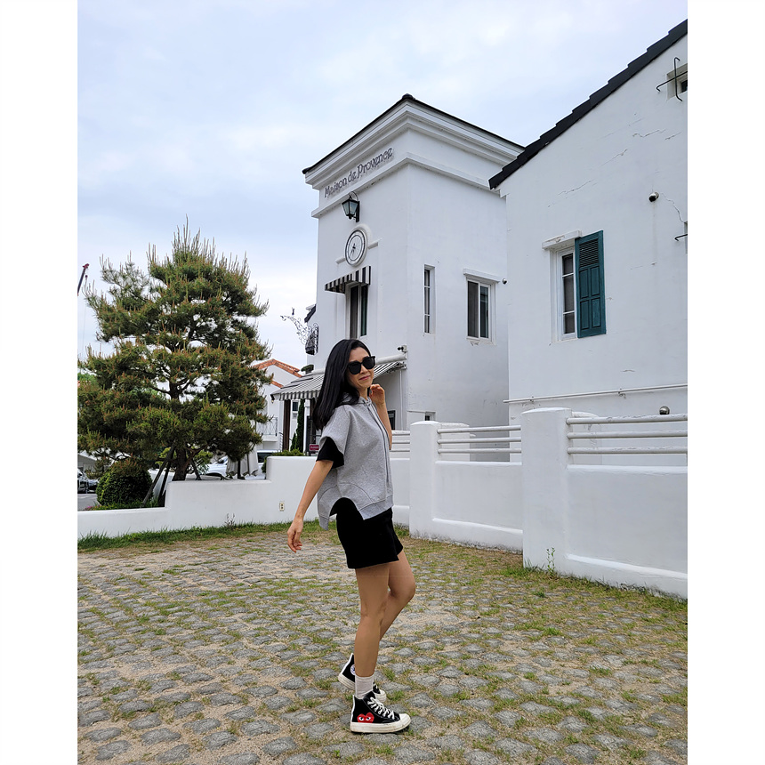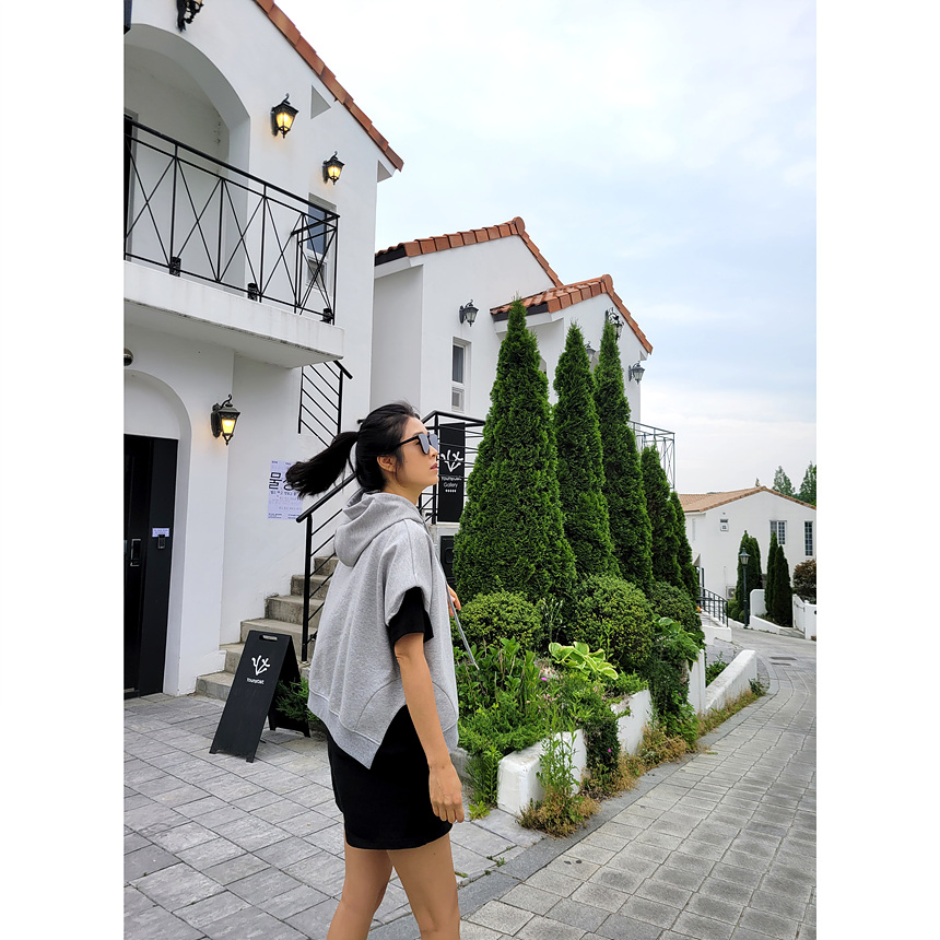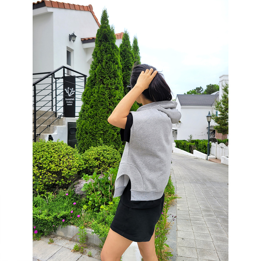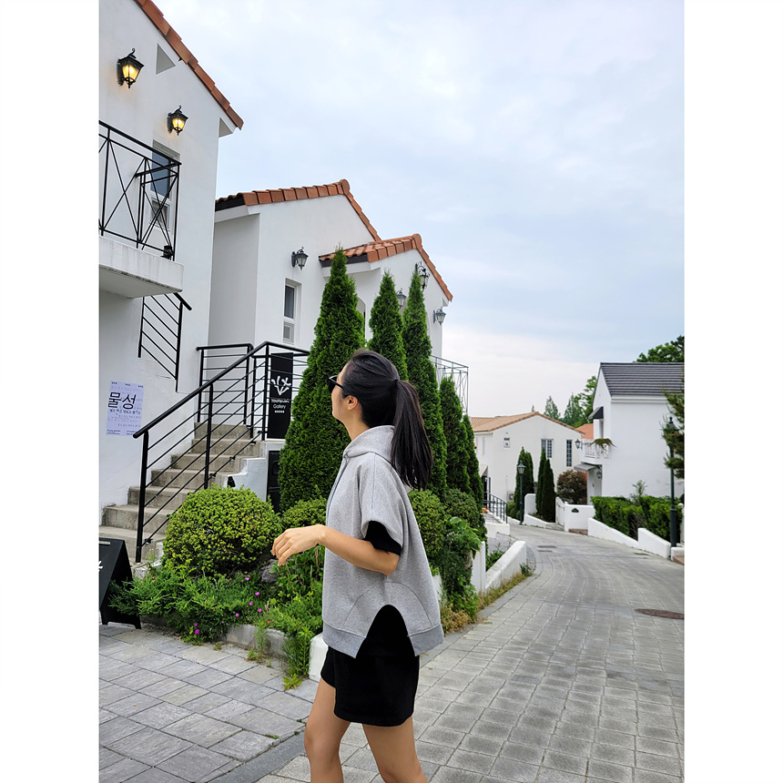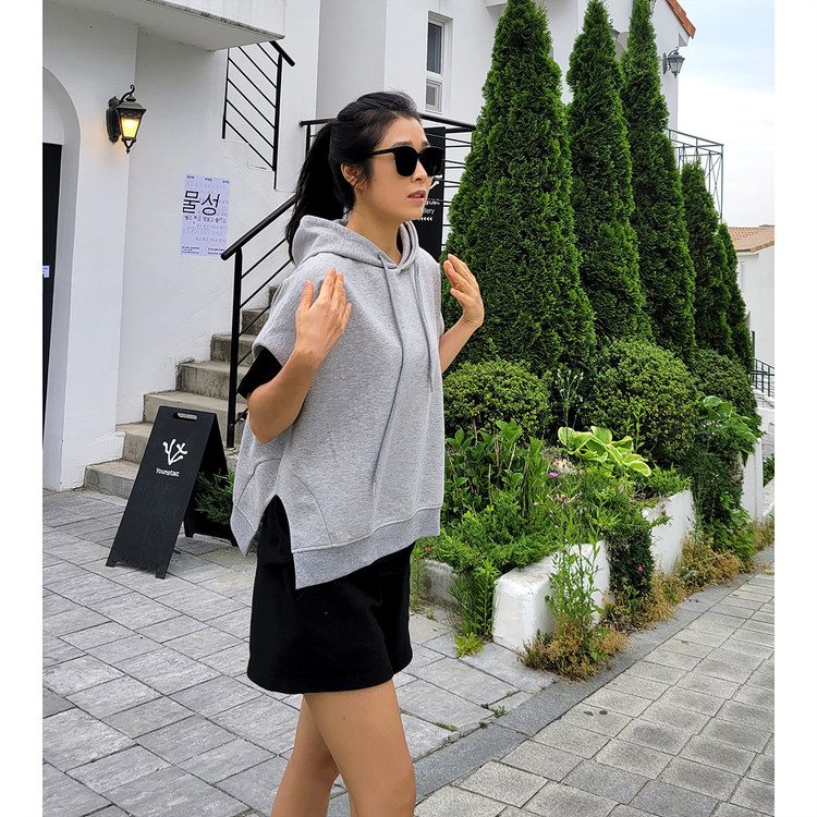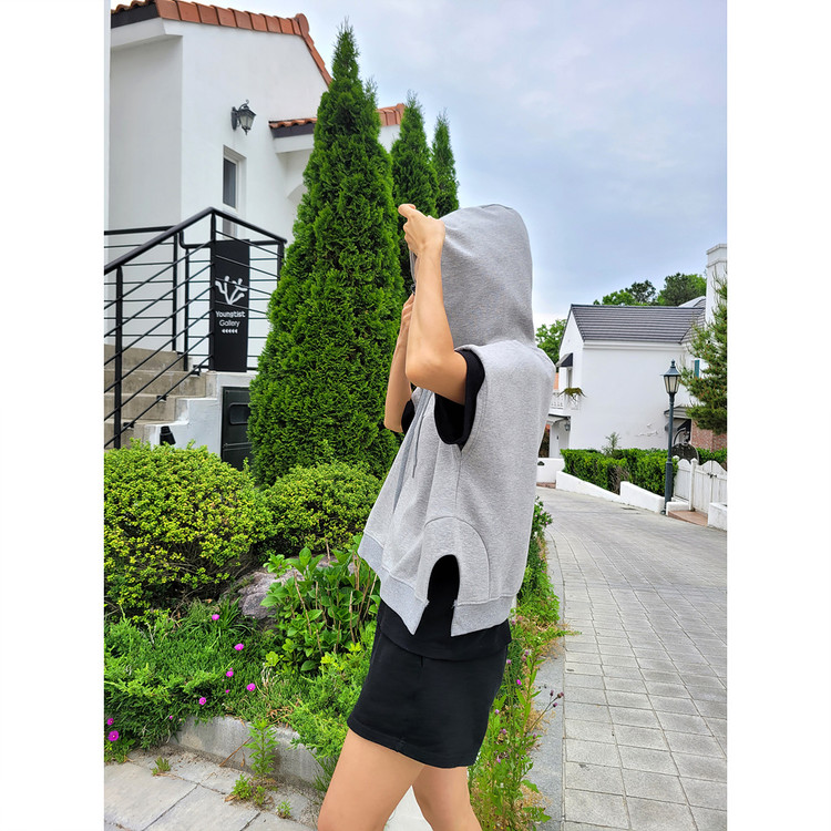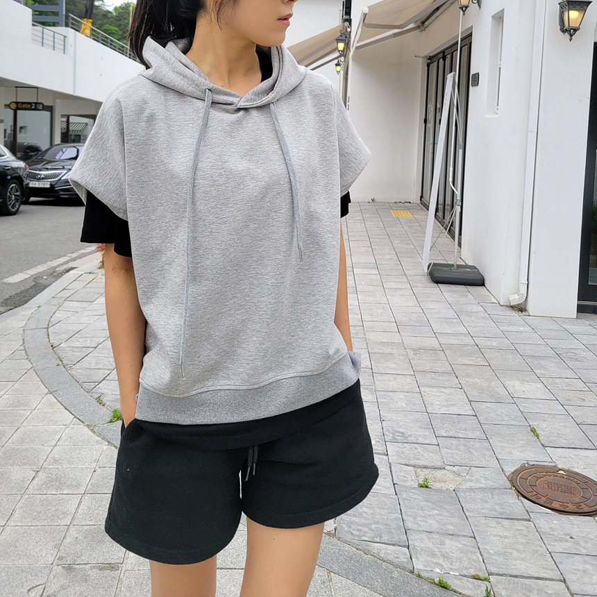 하이퀄리티 유니크 반소매 후드 맨투맨