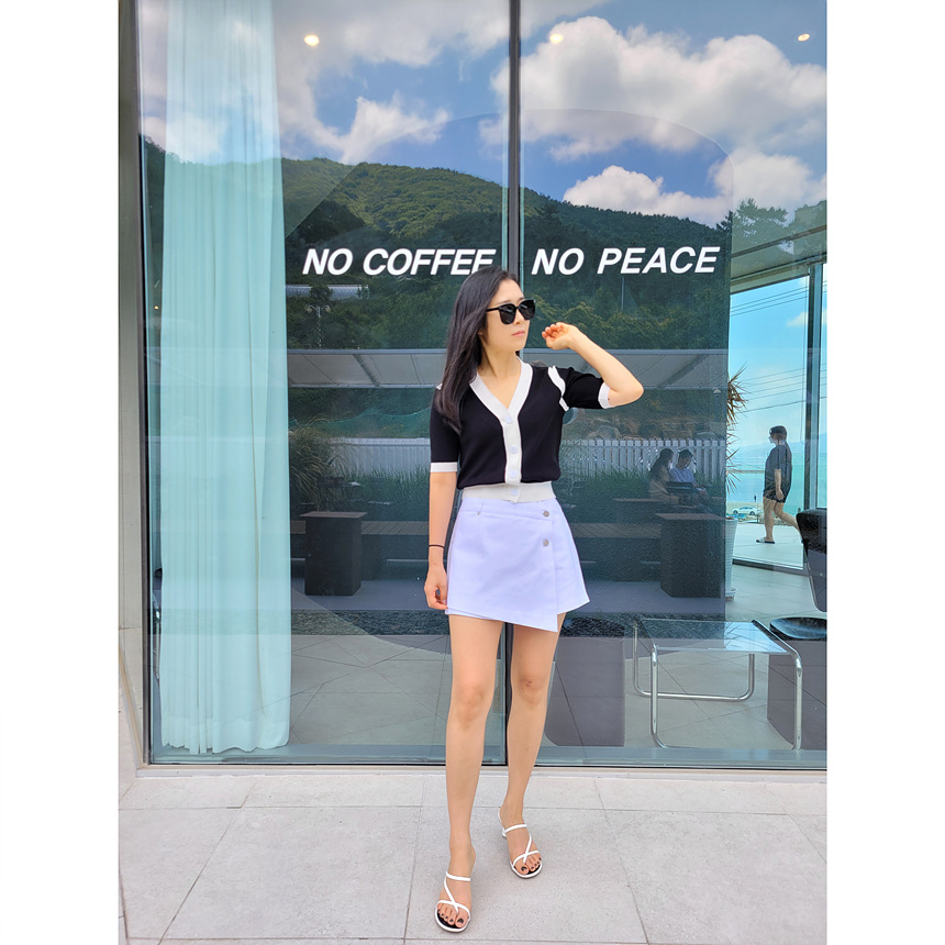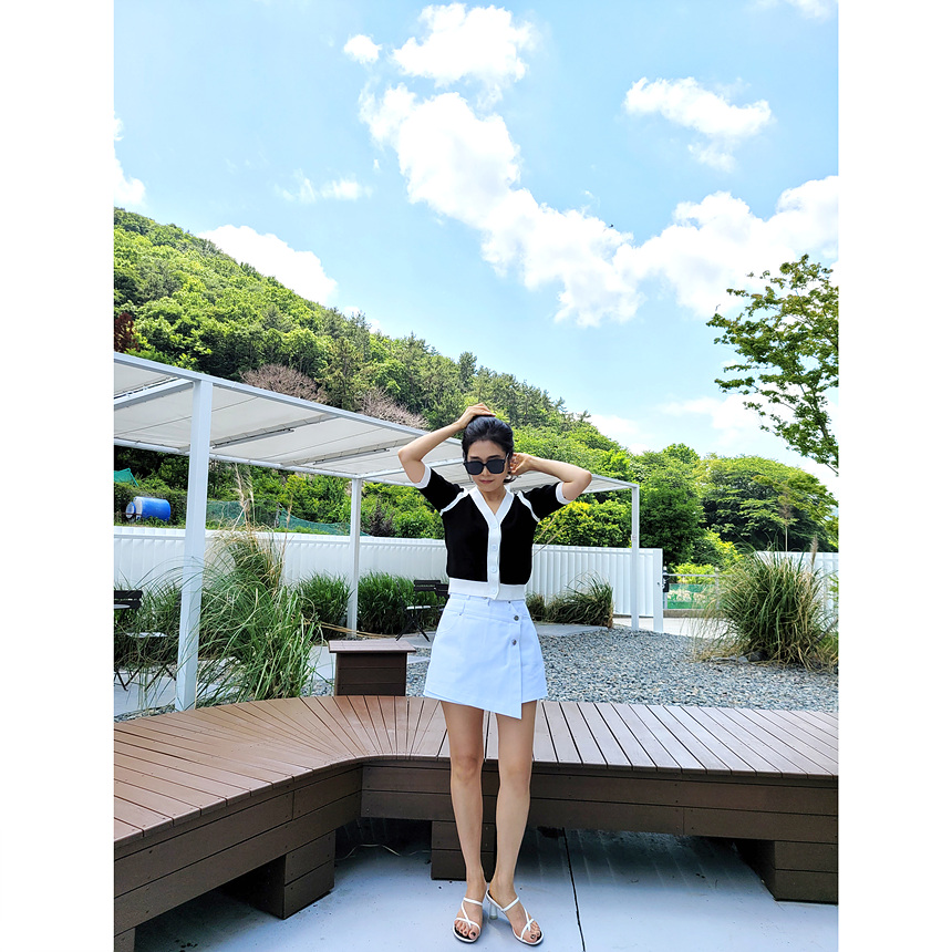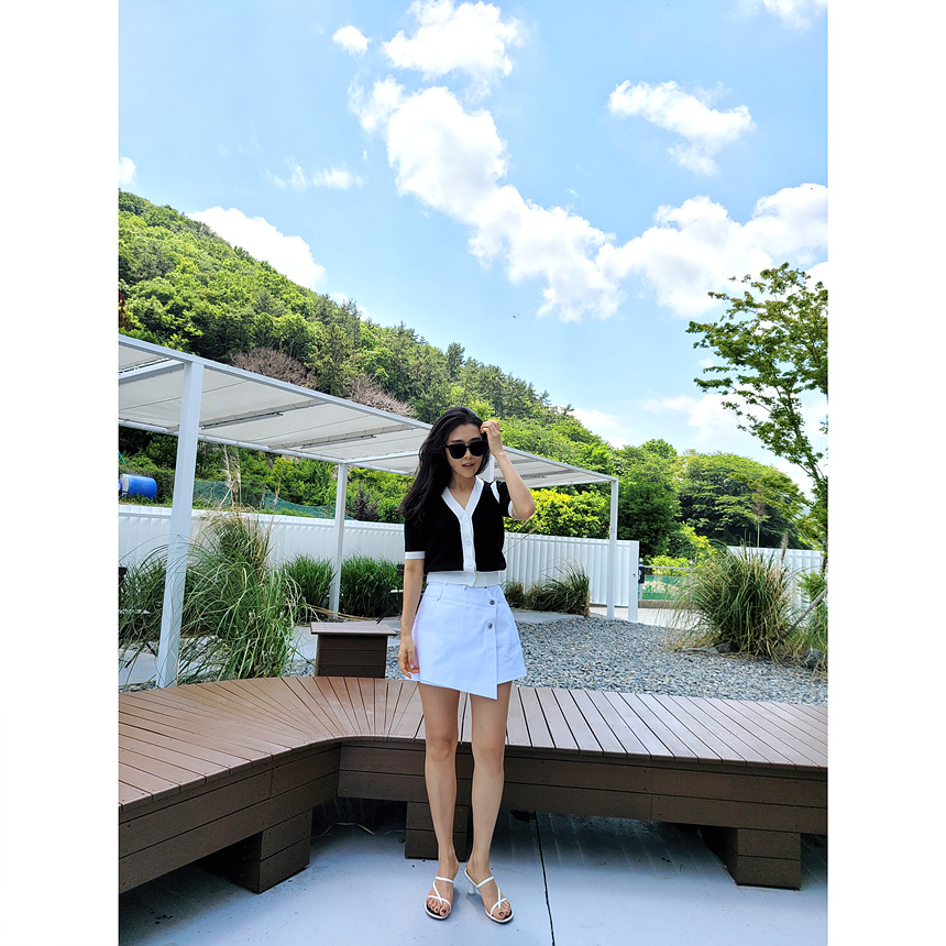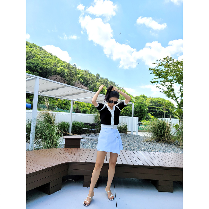 앞쪽은 랩스타일로 버튼을 한번 여며 주시는 디자인 인데요