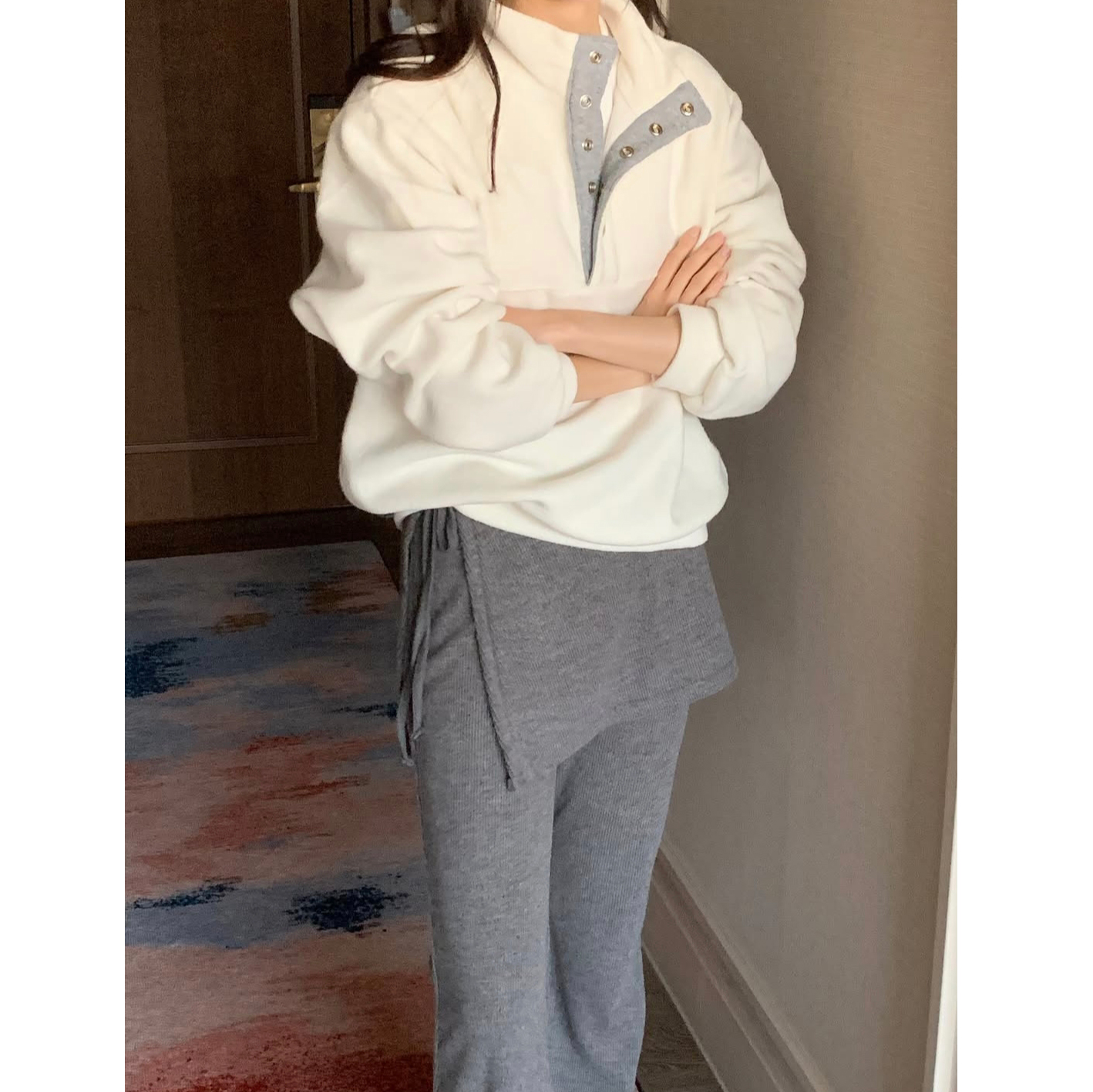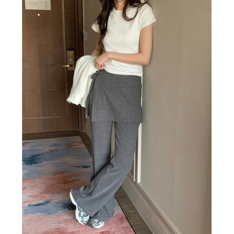 레므 기모 골지 니트 스커트 레이어드 랩 팬츠