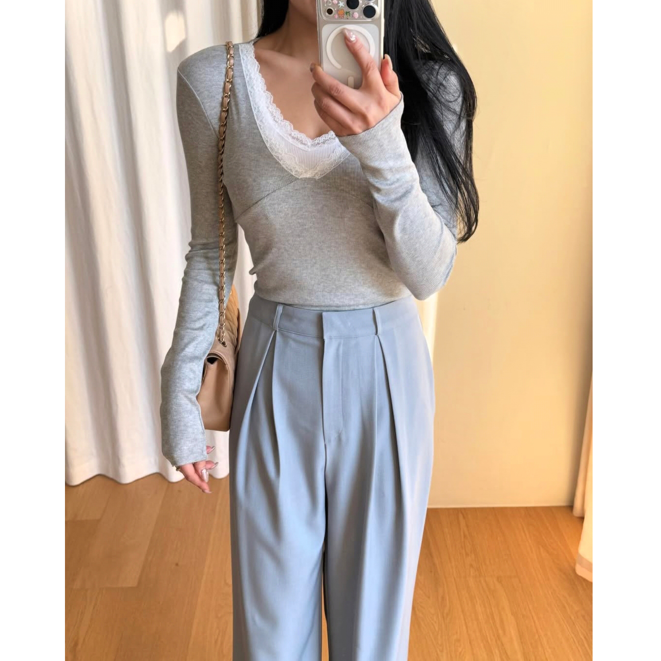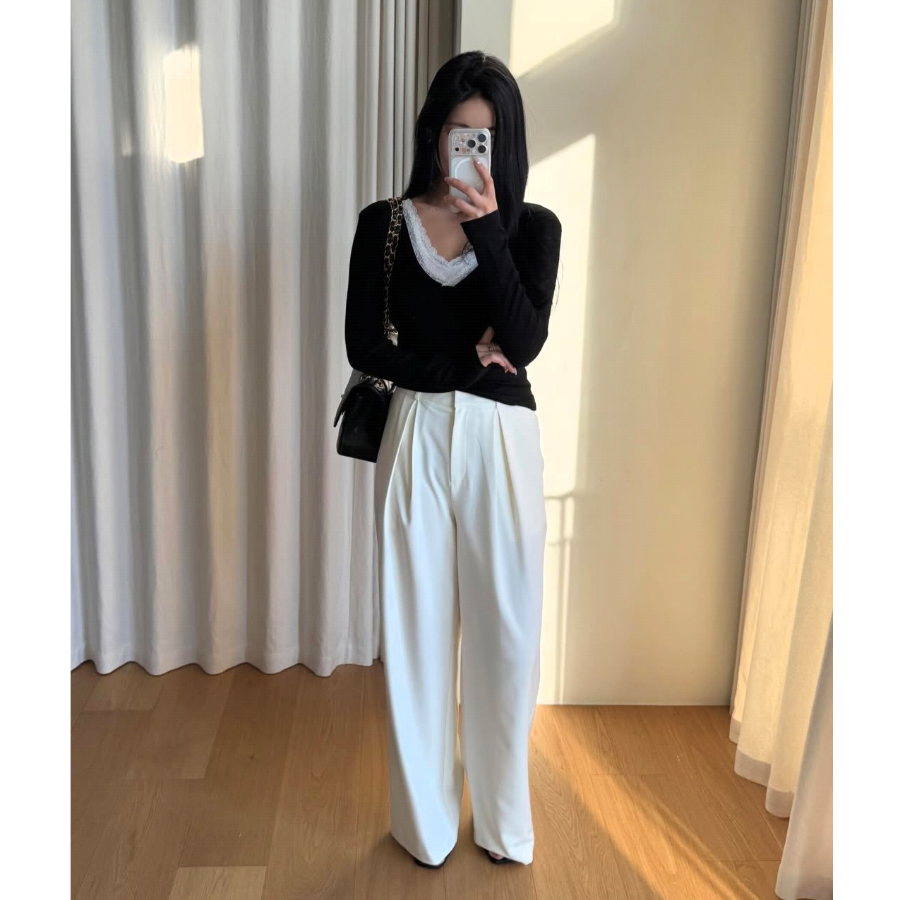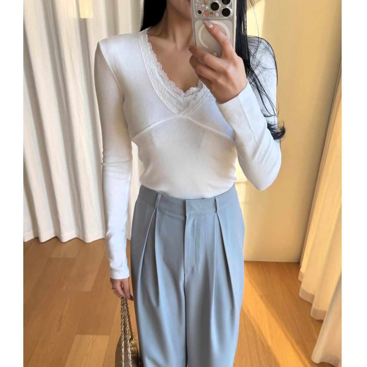 26SS 드뮤어 레이스 패치 슬림 이중티