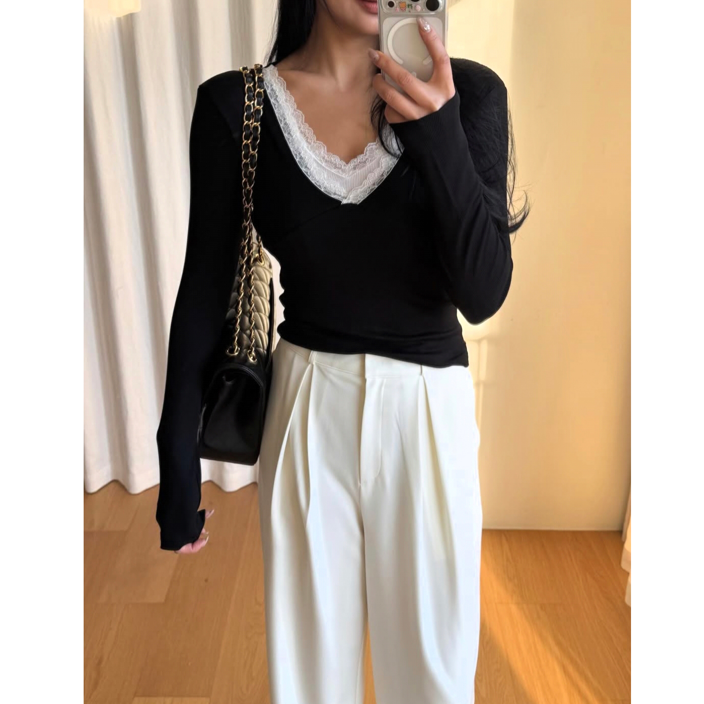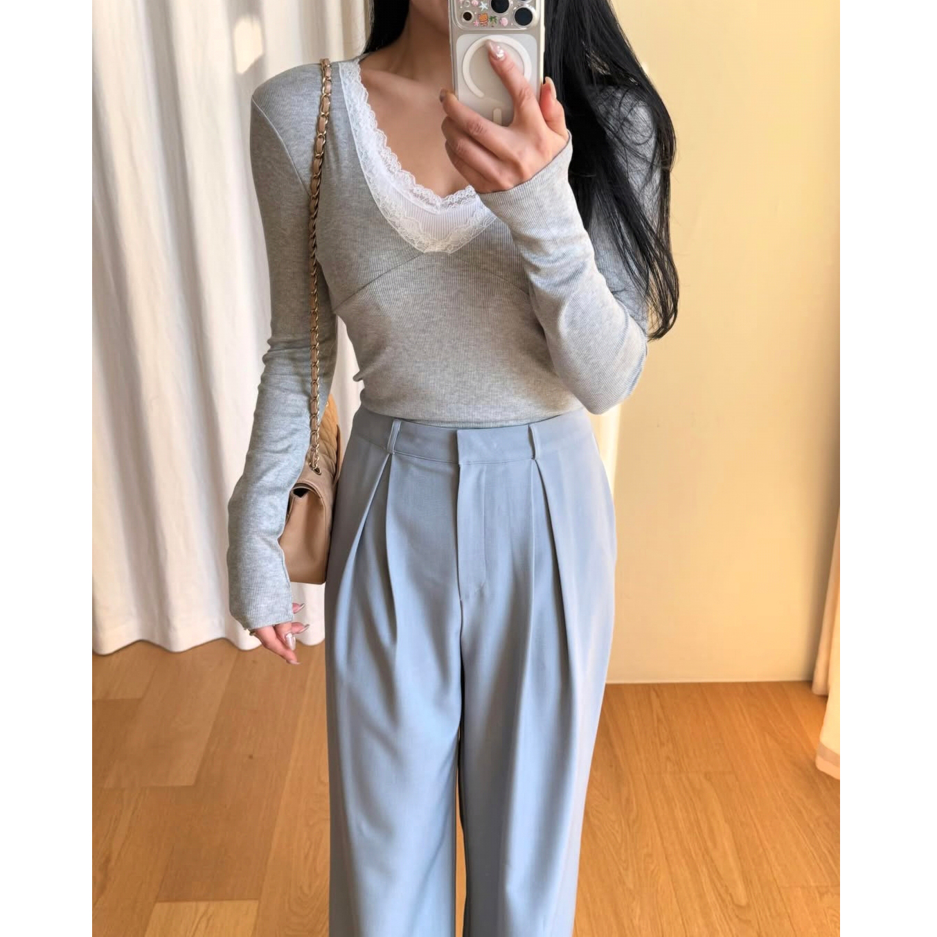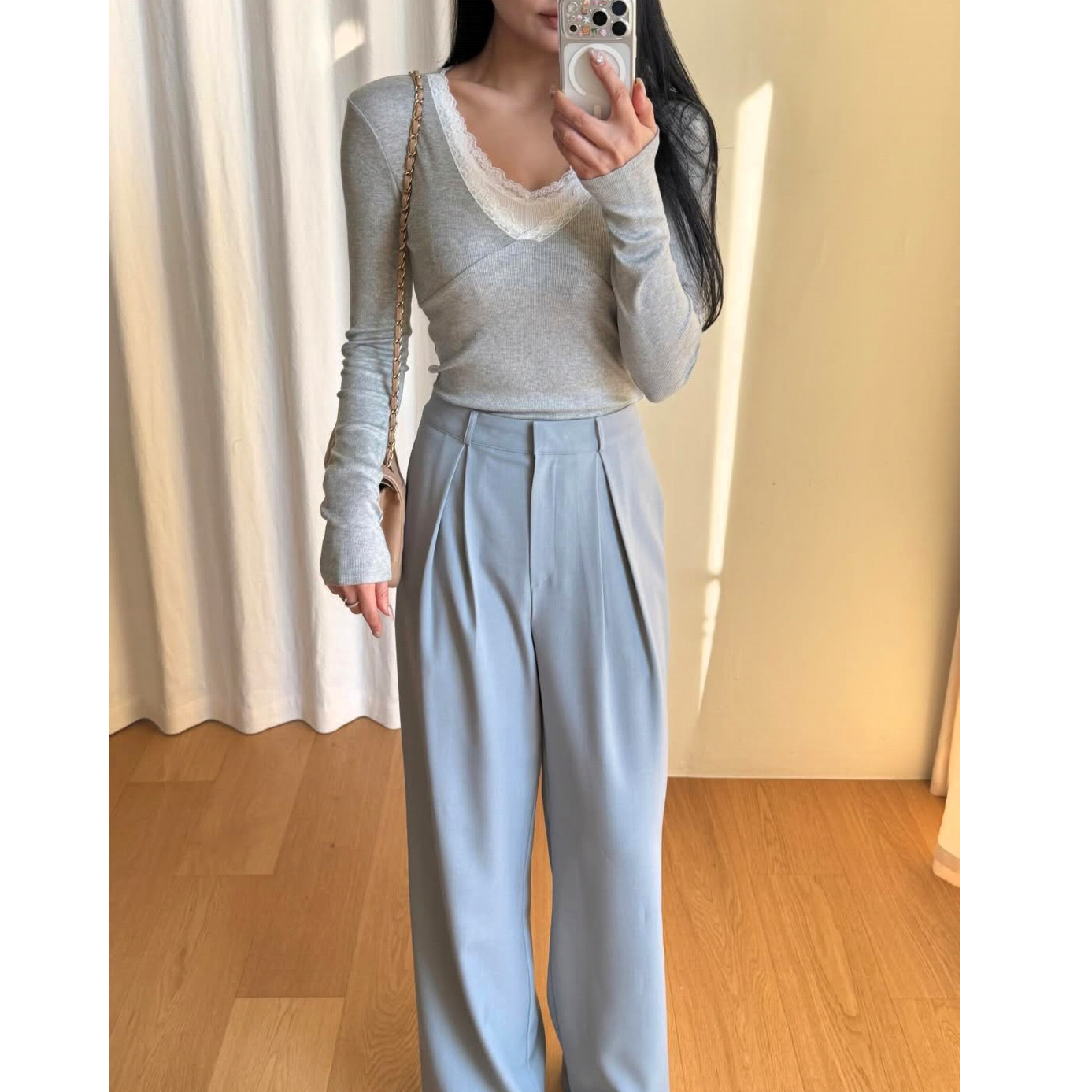 26SS 드뮤어 레이스 패치 슬림 이중티