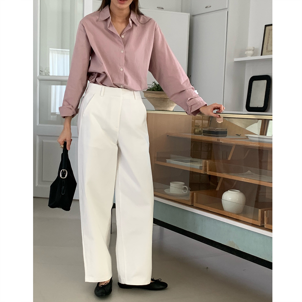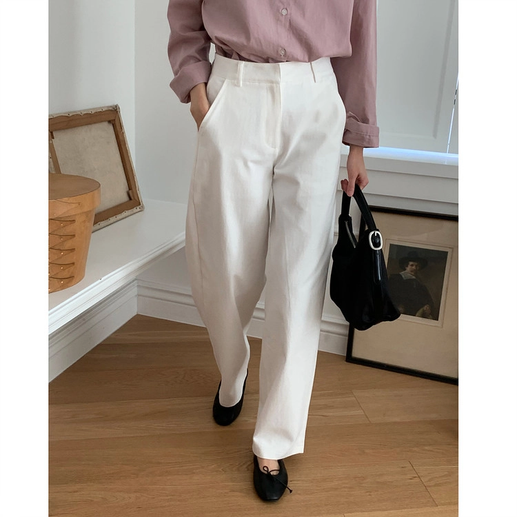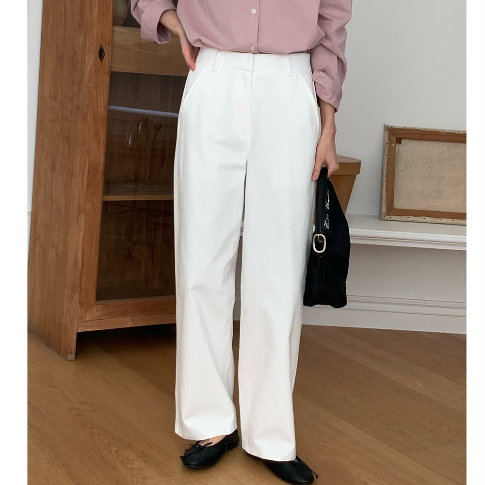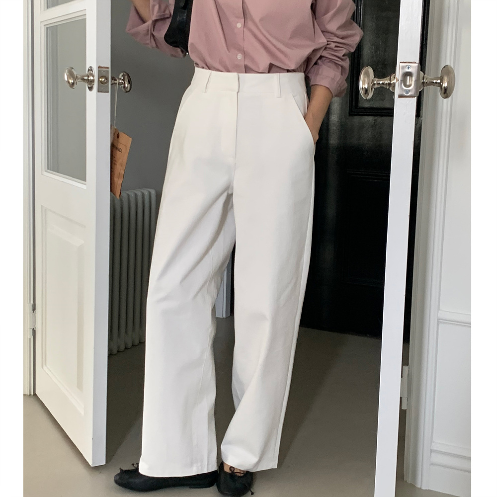 봄 커브드 코튼 슬랙스 팬츠