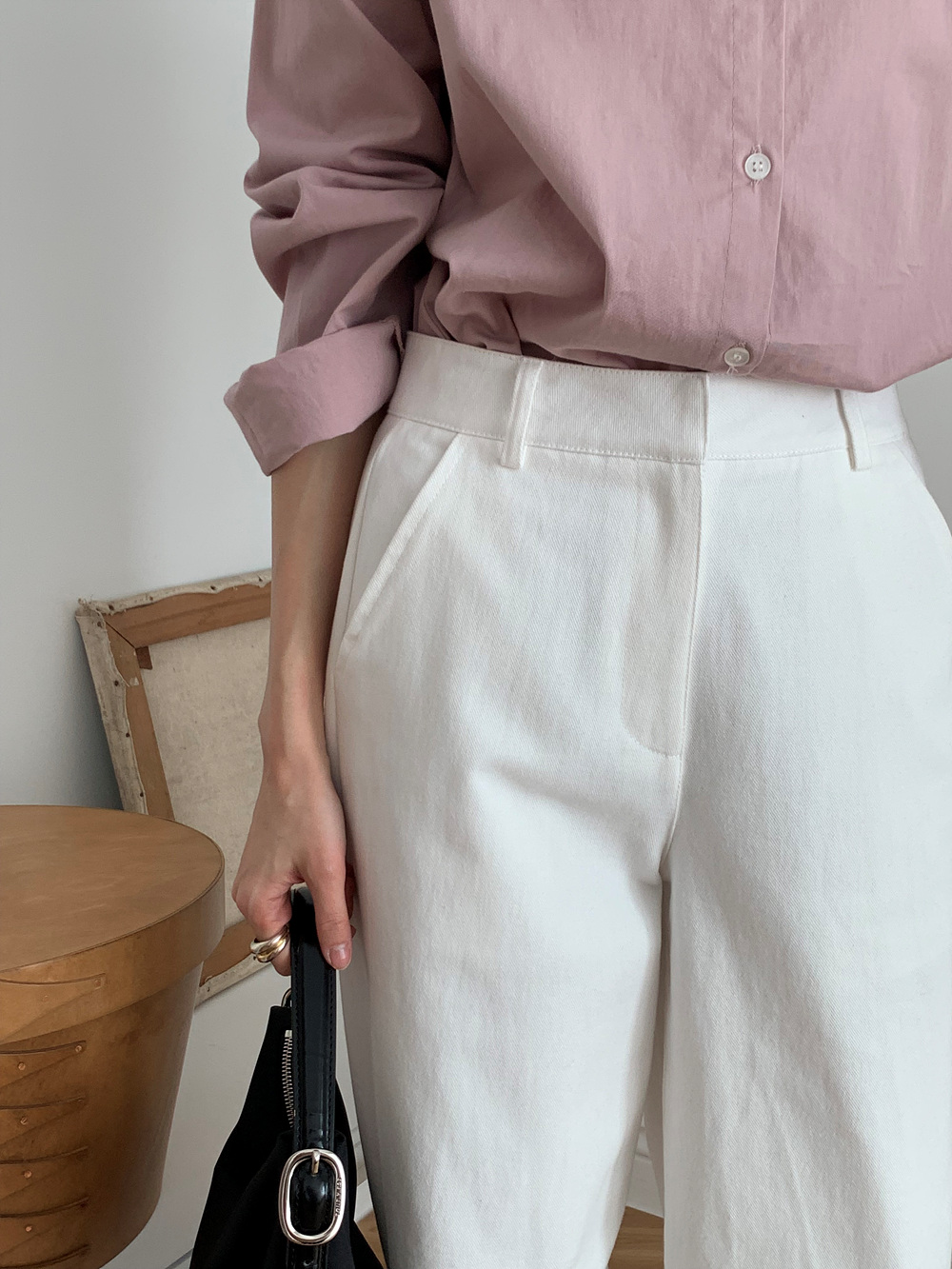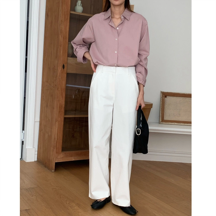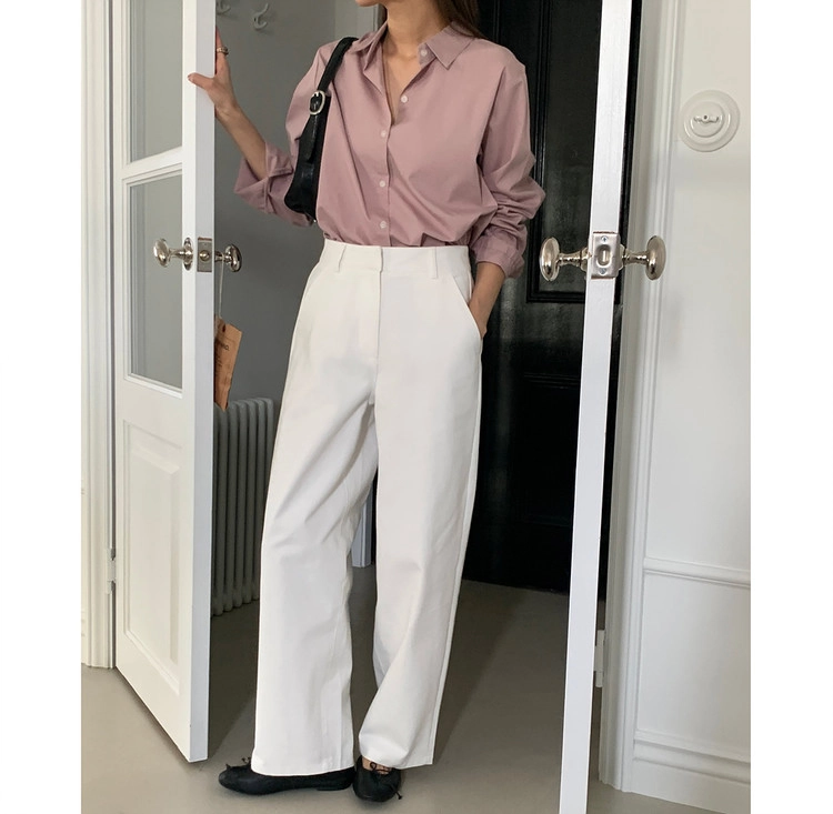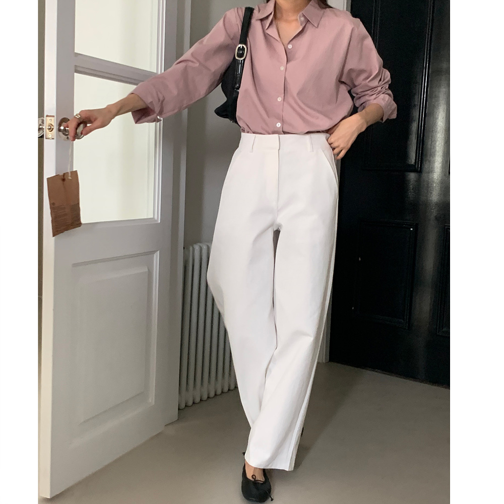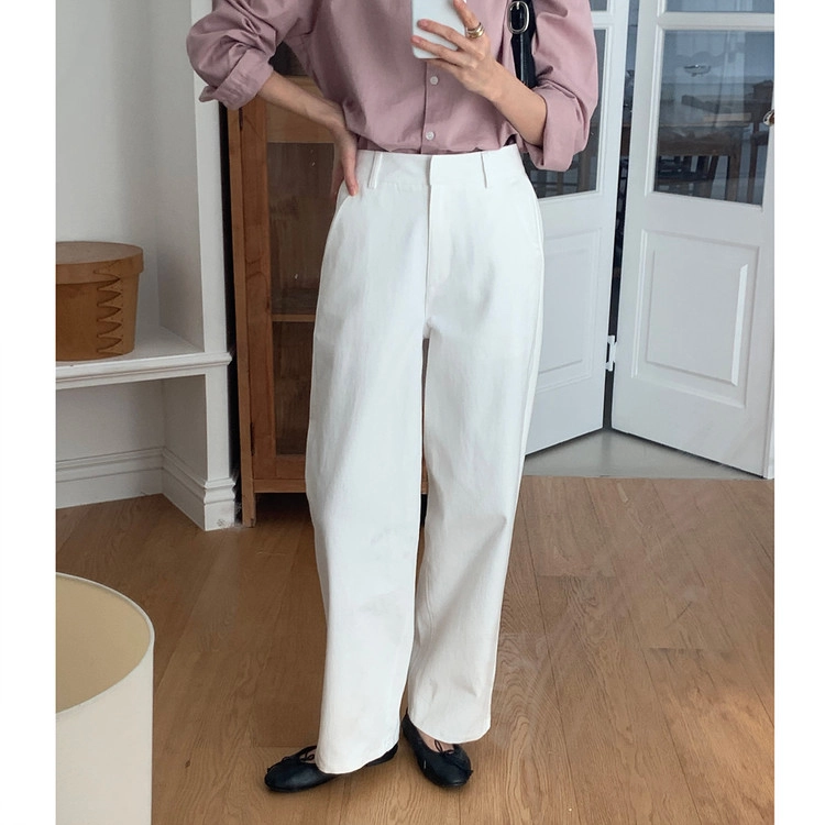 봄 커브드 코튼 슬랙스 팬츠